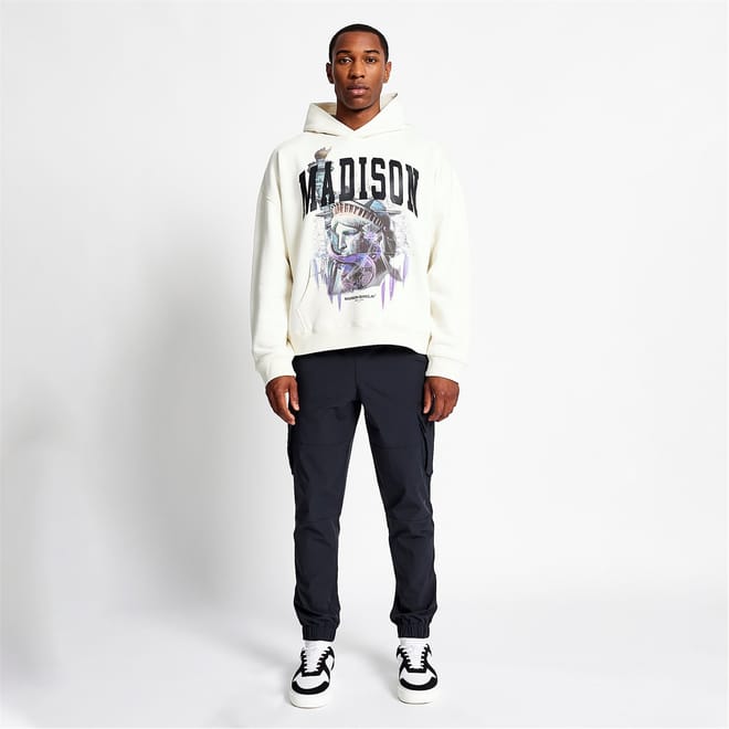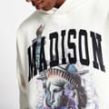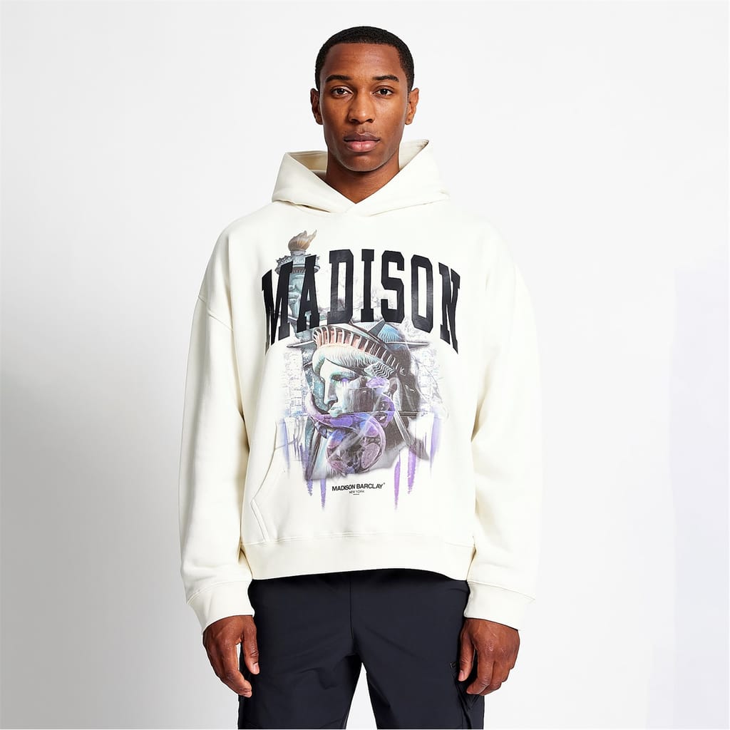The Liberty Hoodie is a graphic print hoodie design. Crafted from heavy weight 100% cotton brushed back fabric with a slight oversized fit. Featuring the iconic Statute Of Liberty with a modern twist, underneath our statement Madison branding.