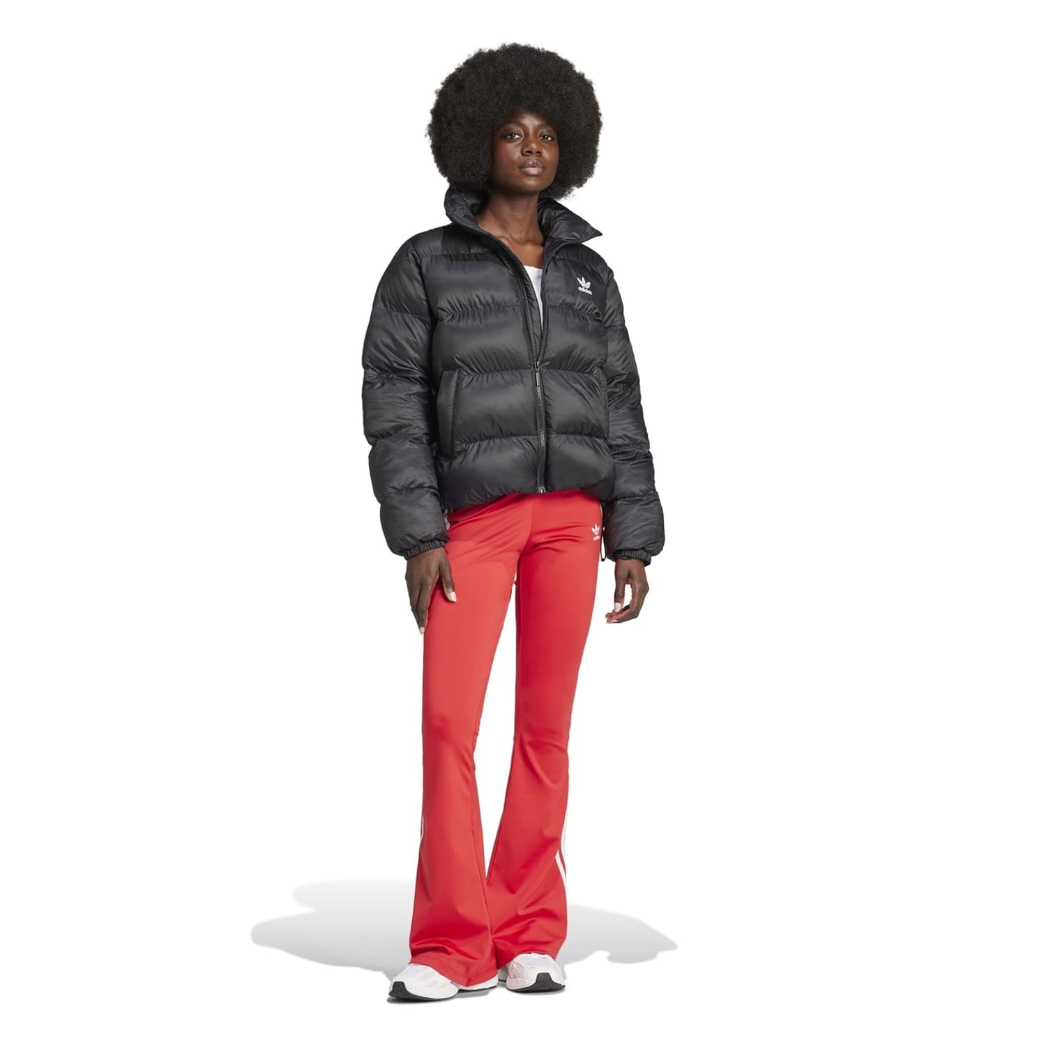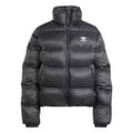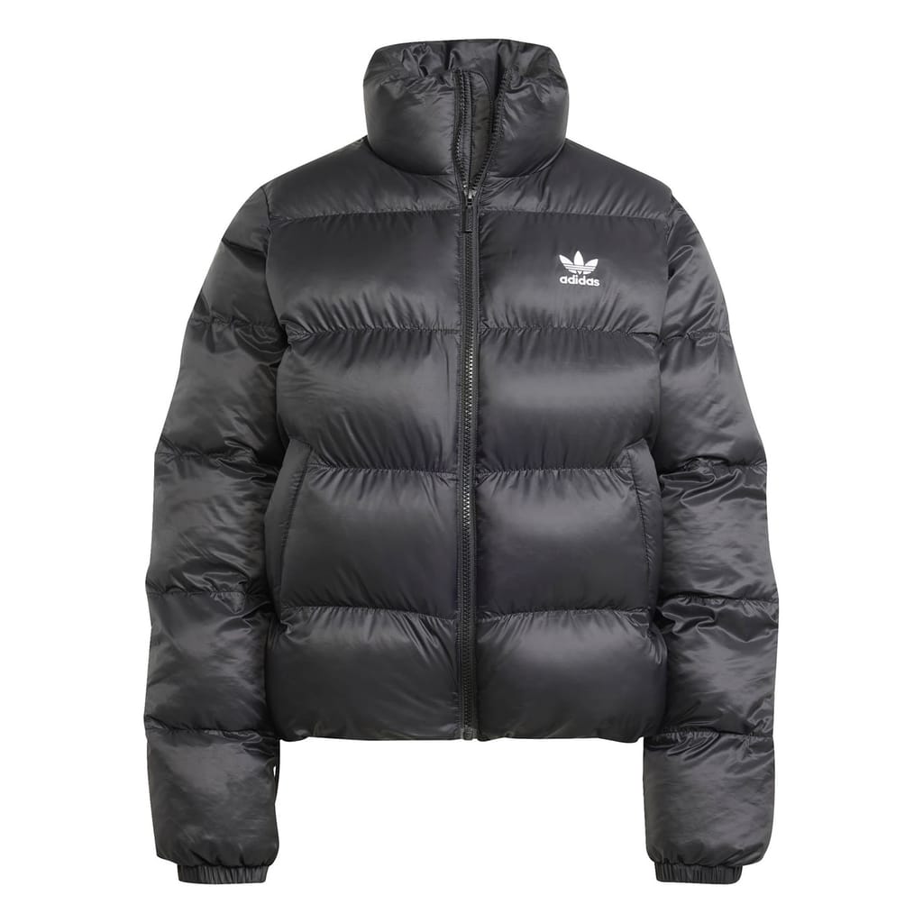 This adidas Originals puffer jacket offers a relaxed fit with a short length, perfect for a casual look. It features a solid pattern with a logo embellishment, adding a touch of brand identity. The jacket is designed with an elasticated hem and cuffs, ensuring comfort and style. A zipper closure provides practicality, making it an ideal choice for cooler weather. -