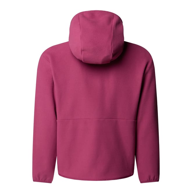 The North Face fleece jacket features a high collar and a hooded design, providing extra warmth and protection. It has a regular fit with a straight hem and elasticated cuffs for comfort. The solid pattern adds a classic touch, while the zipper closure ensures easy wearability. -