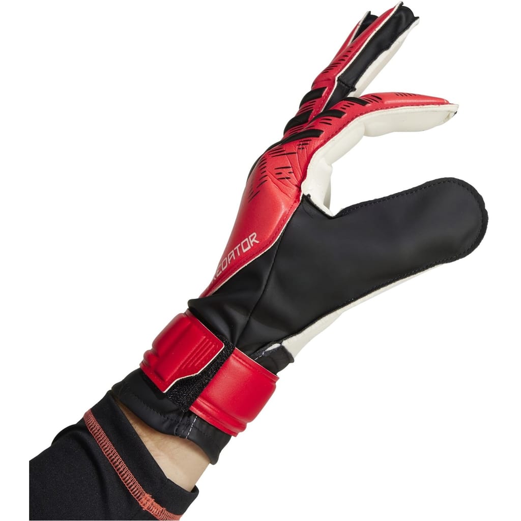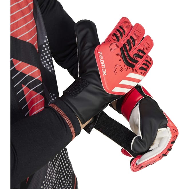 Introducing adidas Predator Training Goalkeeper Gloves, designed for fearless keepers who never back down from a challenge. Expertly made with a recycled polyester blend, this pair showcases the label's commitment to sustainability in football and excellence. Featuring a half wrap wrist strap, they provide a secure and adjustable fit, allowing goalies to focus on what matters most - making those crucial saves. The Soft Grip natural rubber palms cushion even the most aggressive shots, providing extra comfort and protection.