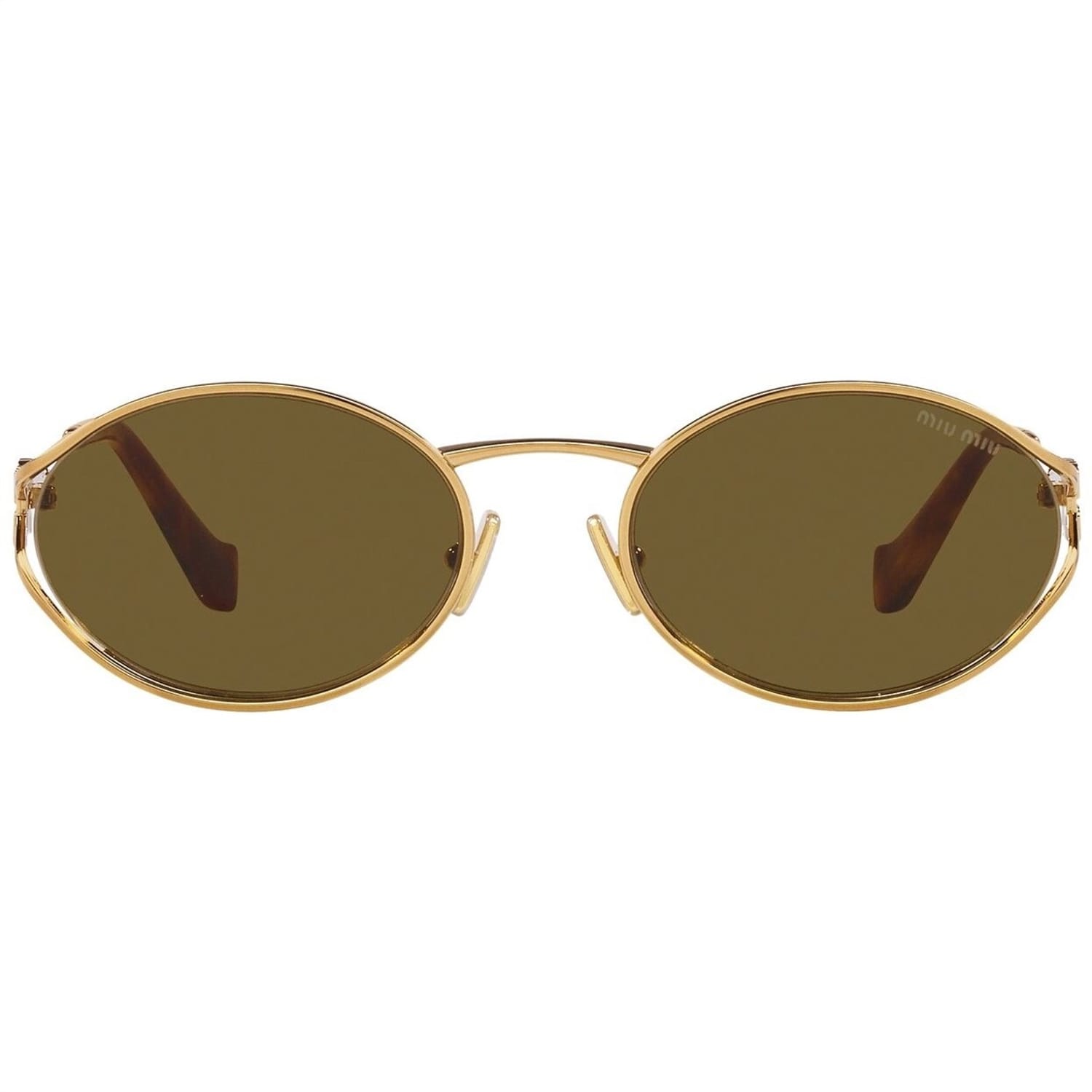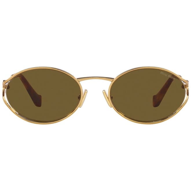 - - Vertical Miu Miu logo integrated into the hinge ensures instant house recognition with every wear.