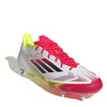 Score a winning goal with the adidas F50 Elite Soft Ground Football Boots. Constructed in part with recycled materials, the thin Fibertouch upper combined with a textile lining ensures optimal comfort and allows for breathability. Featuring Sprintframe 360 soft ground outsoles with bladed and semi-conical studs optimising performance on soft ground, maximising acceleration and speed in all directions. The adaptable lightweight tunnel tongue, with TPU reinforcements, is strategically placed for an enhanced fit experience and lockdown. With a lace closure and a compression fit, these boots offer a secure and personalised feel, while the Sprintweb 3D texture provides enhanced ball contact especially when dribbling at high speeds.