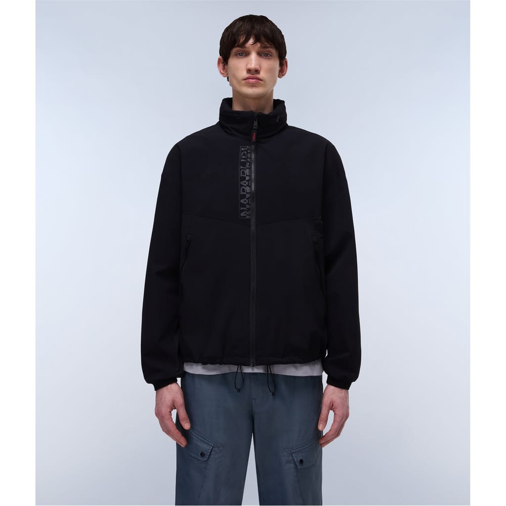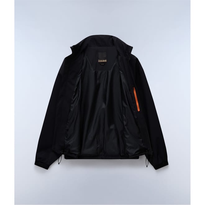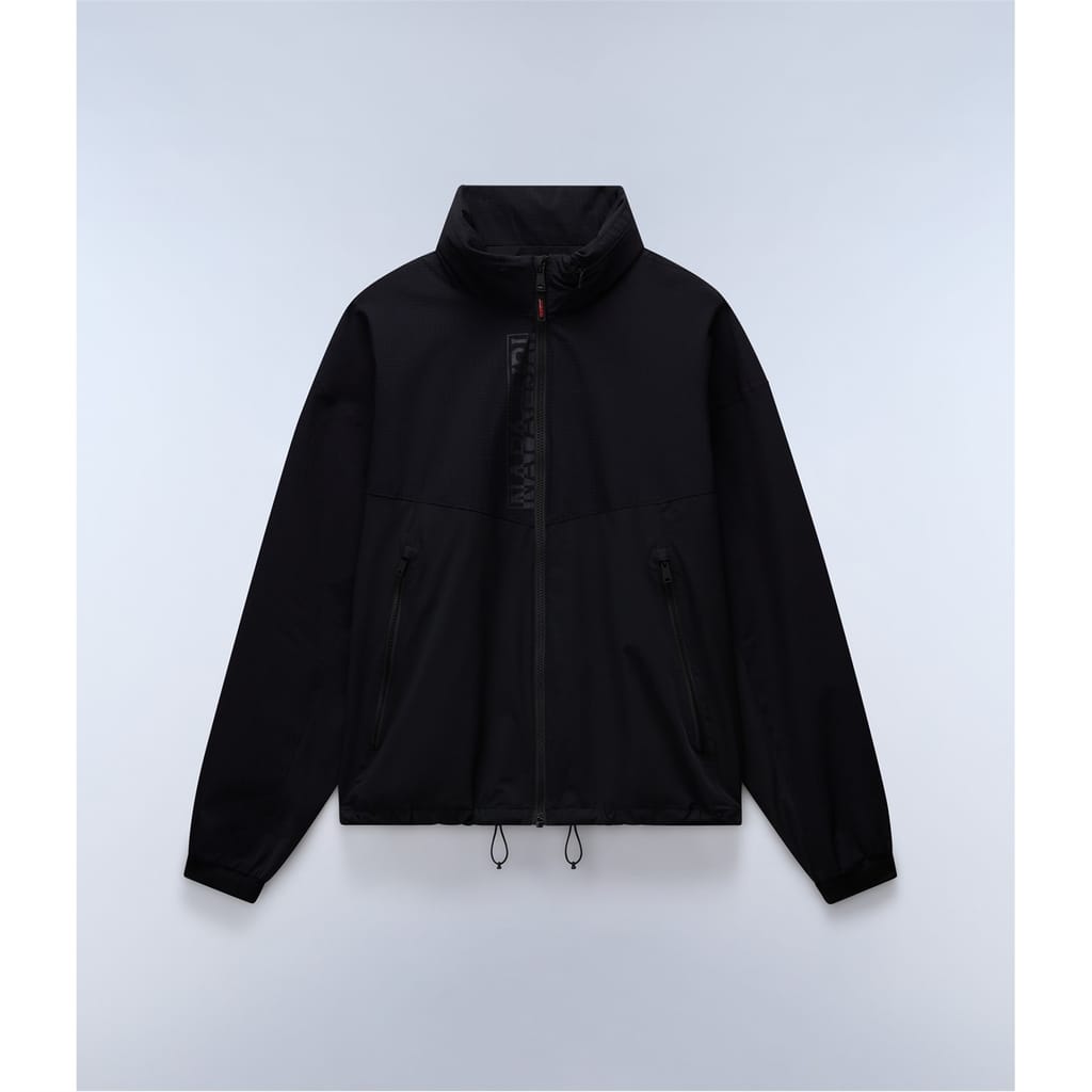 This Napapijri rain jacket is designed with a high neck and features a water-repellent finish, ensuring protection against the elements. The jacket has a regular fit and a solid pattern, complemented by a zipper closure and drawstring for added functionality. Embellished with a logo and patch, it combines style with practicality. -
