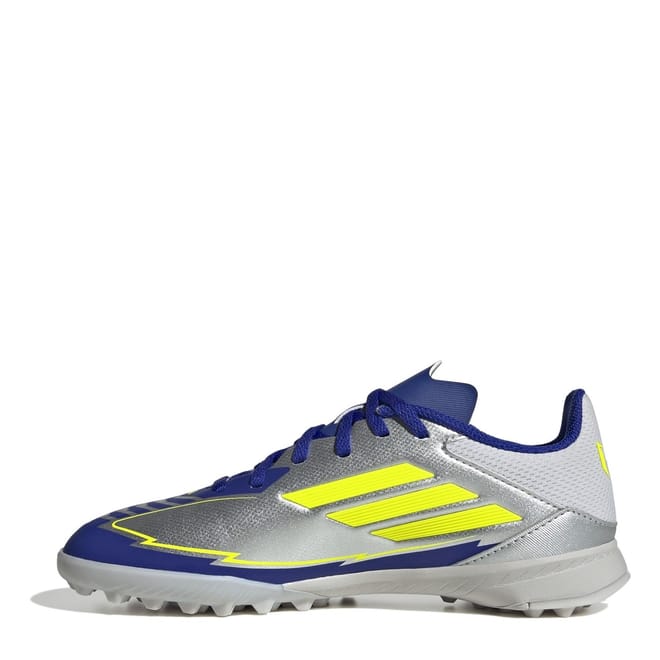 Begin your little superstar on the path to greatness with the adidas F50 Astro Turf Football Boots, designed for speed and control on artificial turf. The Fiberskin upper features an adaptive Tunnel Tongue that locks them in for a secure, snug fit. Beneath, the rubber outsole ensures optimal grip, while soft EVA cushioning provides comfort with every stride. Perfect for young players ready to start their journey to greatness.