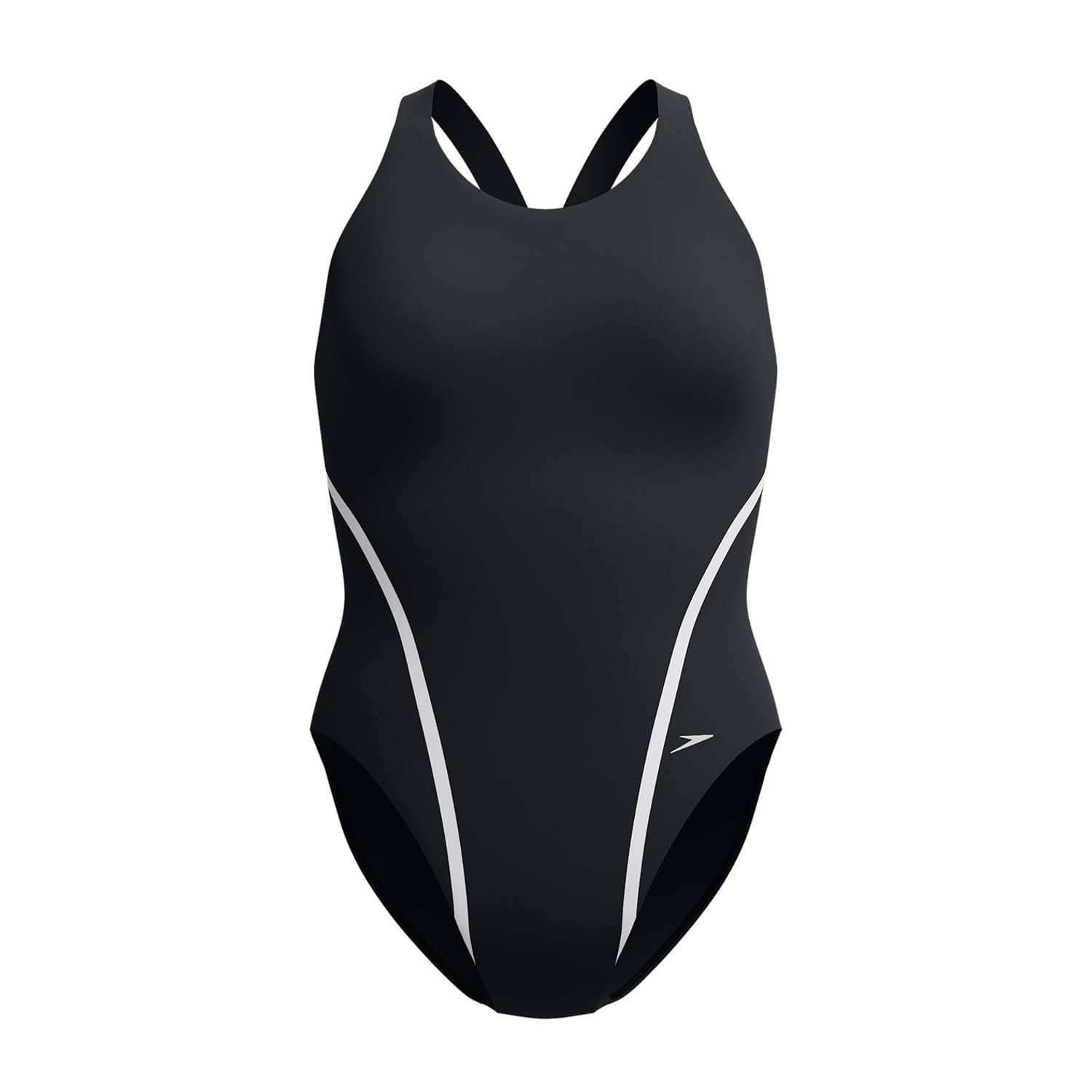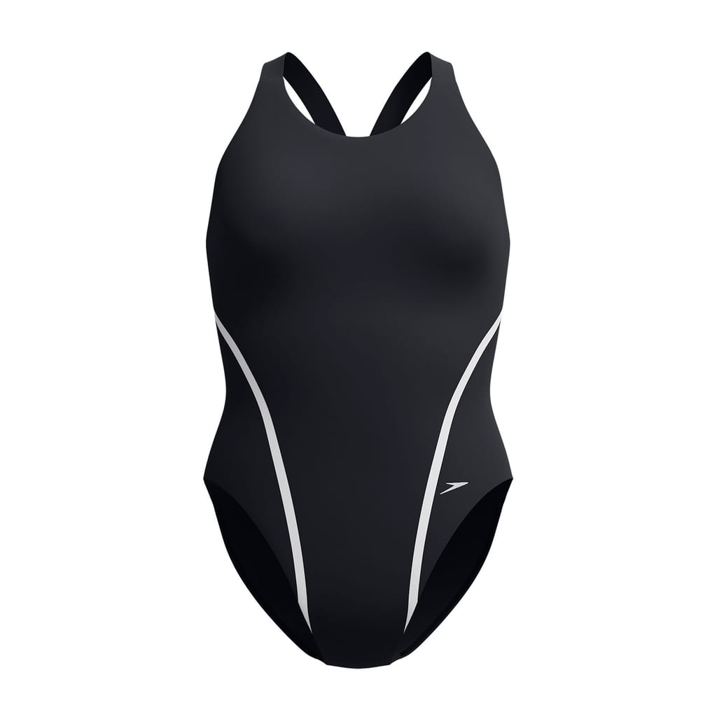 Discover the Speedo swimwear, a high-neck one-piece designed for swimming enthusiasts. This piece features a sleek design with a prominent logo embellishment, ensuring both style and functionality. Perfect for those who appreciate quality and performance in their swimwear collection. -