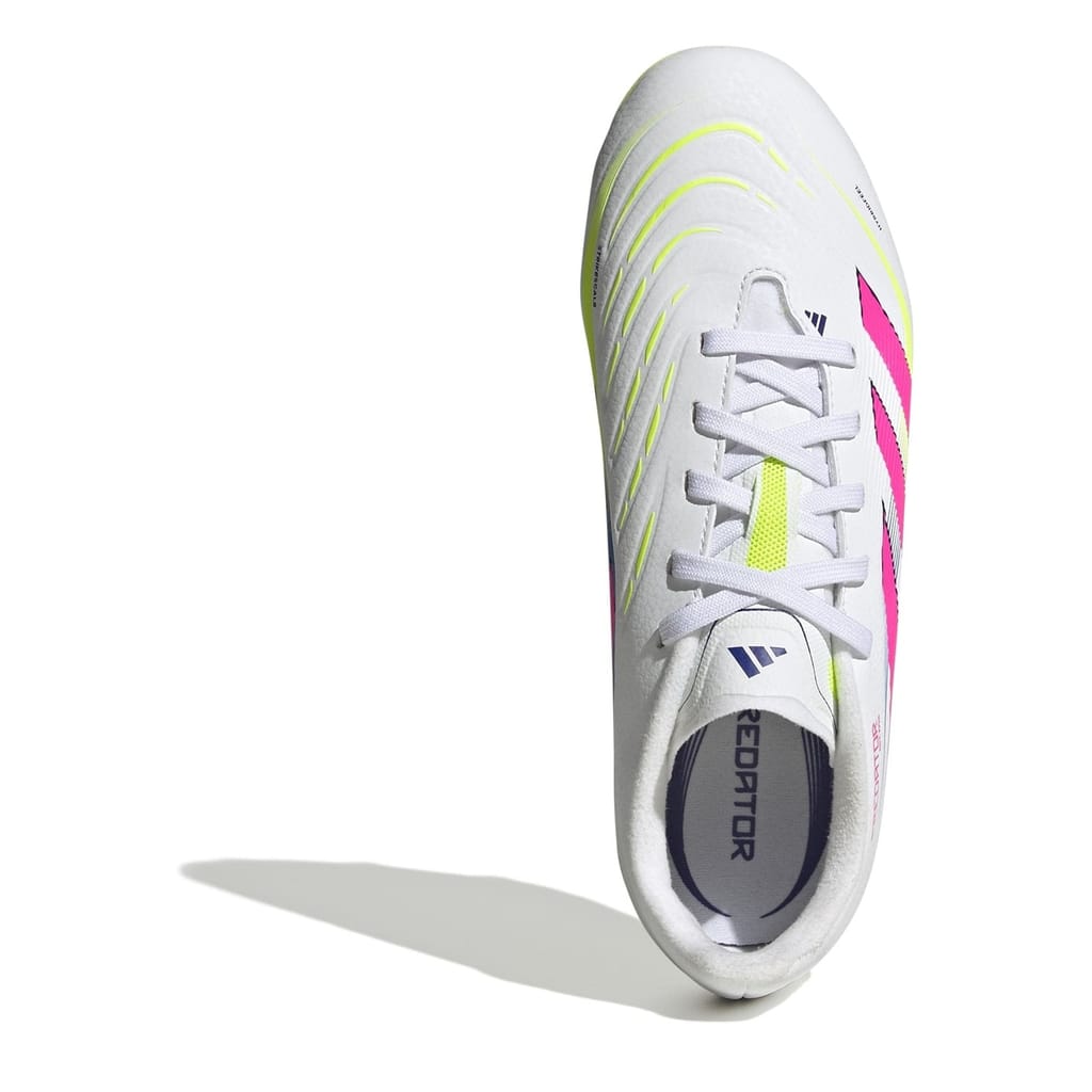 Go into every game knowing you'll score in juniors' adidas Predator League boots crafted for goals. Their Hybridfeel upper incorporates an all-over 3D texture and grippy Strikescale fins to help you manipulate the football during strikes. A versatile outsole ensures you're in the right place at the right time on a variety of surfaces.