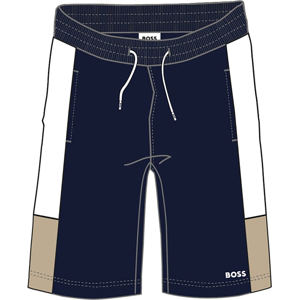 These junior sweat shorts from Boss are perfect for casual days. Featuring a solid pattern and a comfortable drawstring closure, they offer a relaxed fit. The iconic logo embellishment adds a touch of brand identity, making them a stylish choice for any casual collection. -