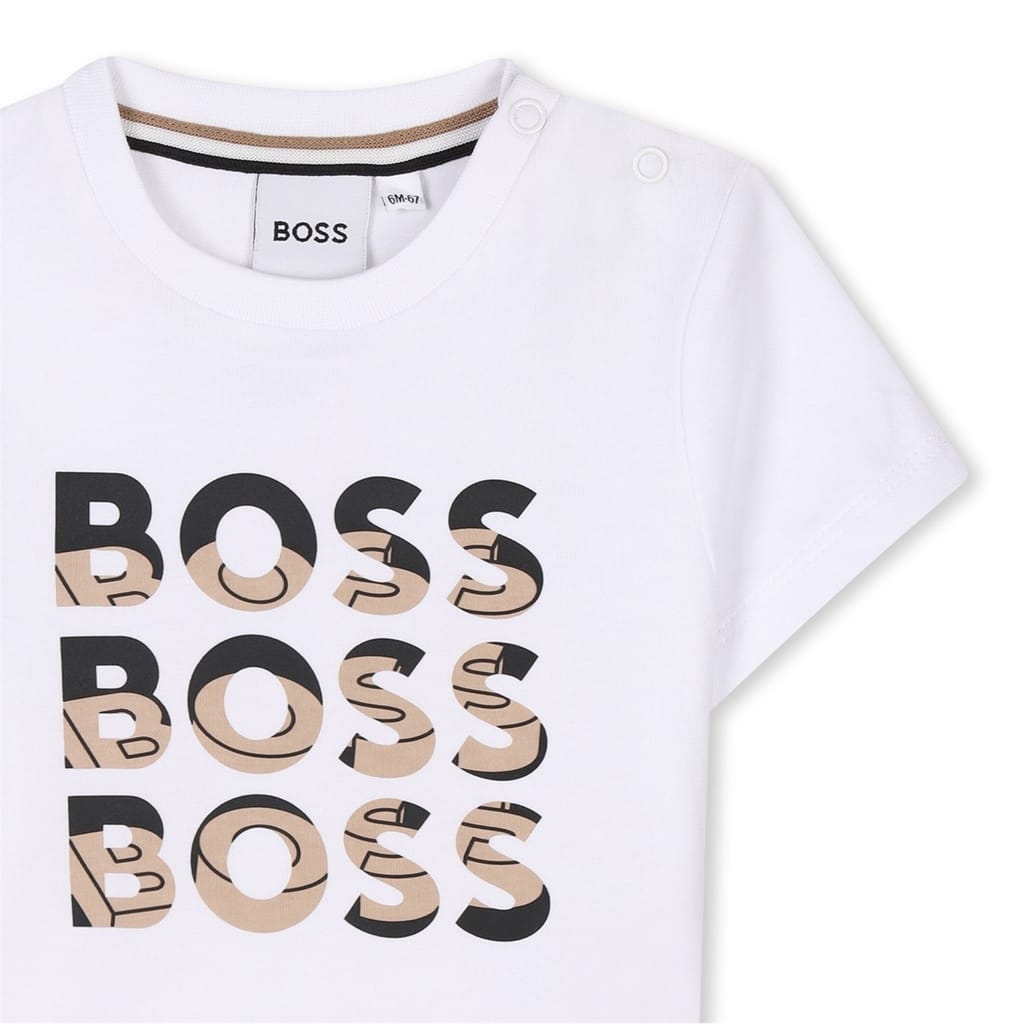 Elevate your casual wardrobe with this Boss t-shirt. Crafted for a regular fit, it features a crew neck and short sleeves, offering a classic silhouette. The standout logo print adds a distinctive touch, making it a perfect choice for relaxed days. This top embodies the essence of casual style while maintaining a modern edge. -