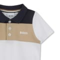 This Boss top from the semi-formal collection features a polo collar and a button closure. Designed in a slim fit, it showcases a stylish color block pattern. The top is elegantly finished with a logo embellishment, adding a touch of sophistication to your wardrobe. -