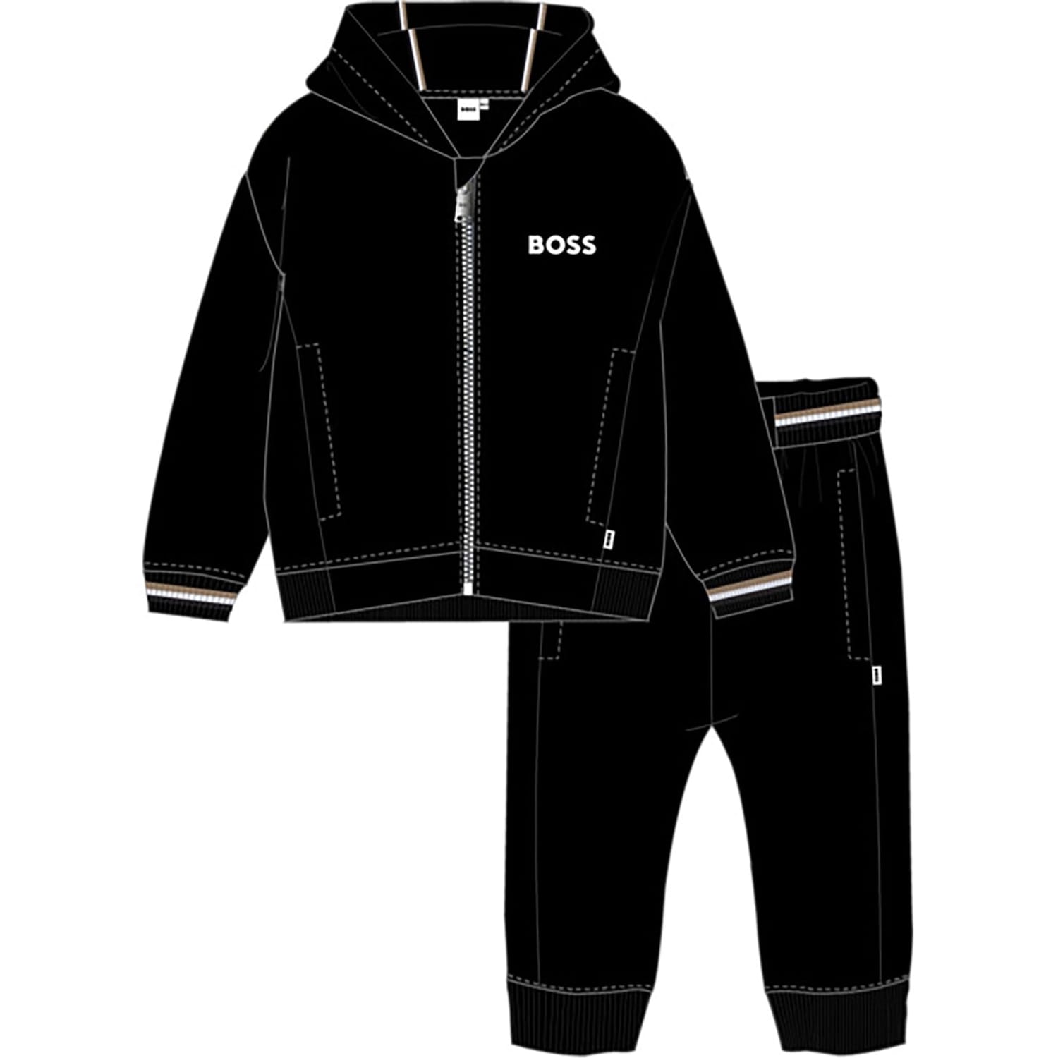 Sleek shape meets brand style in the BOSS Logo Tracksuit for infants. This coordinated set combines comfort with designer quality for little ones who are always on the move.