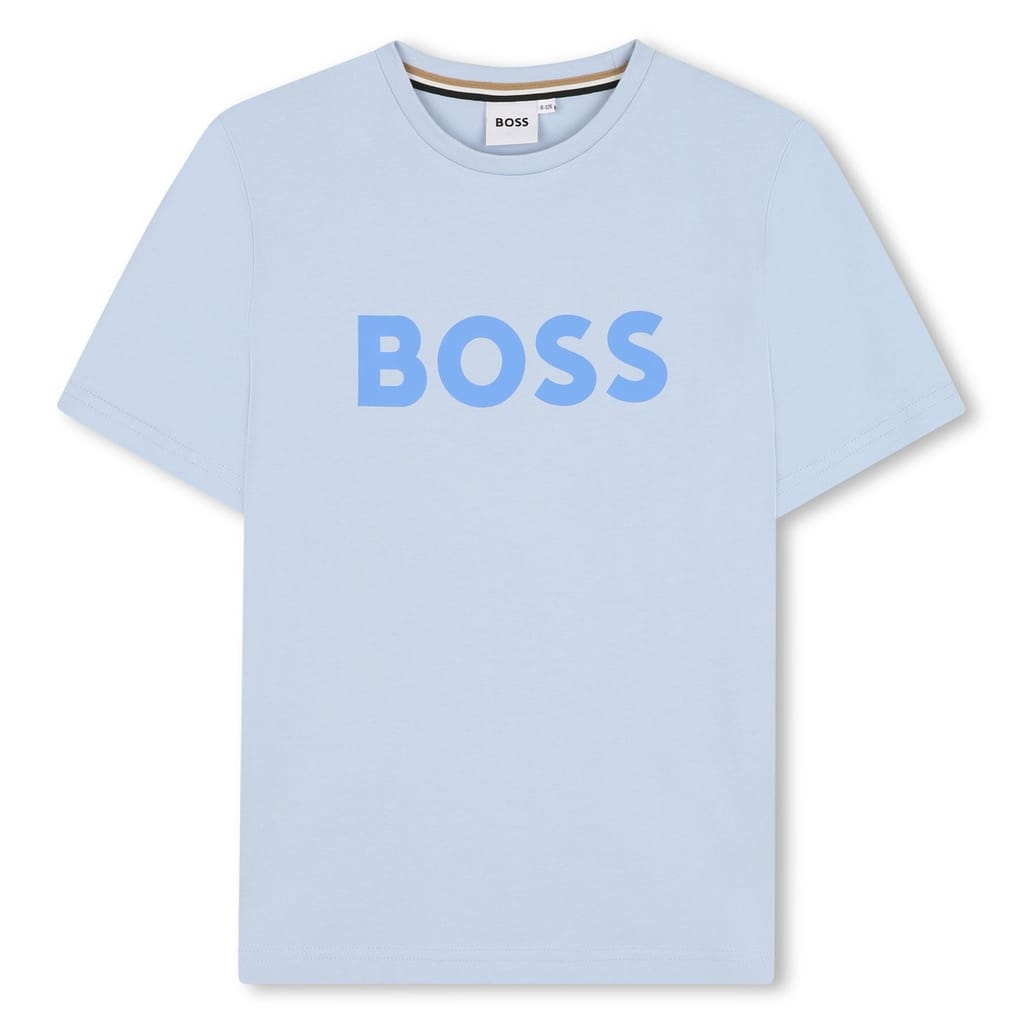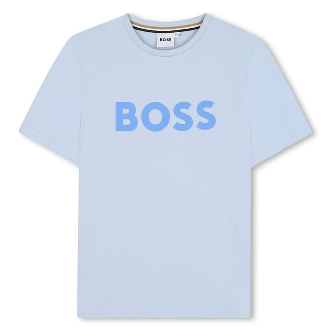 Discover the Boss junior t-shirt, a staple from the casual collection. This regular fit top features a classic crew neck and short sleeves. The standout logo print adds a signature touch, making it a stylish choice for any occasion. -