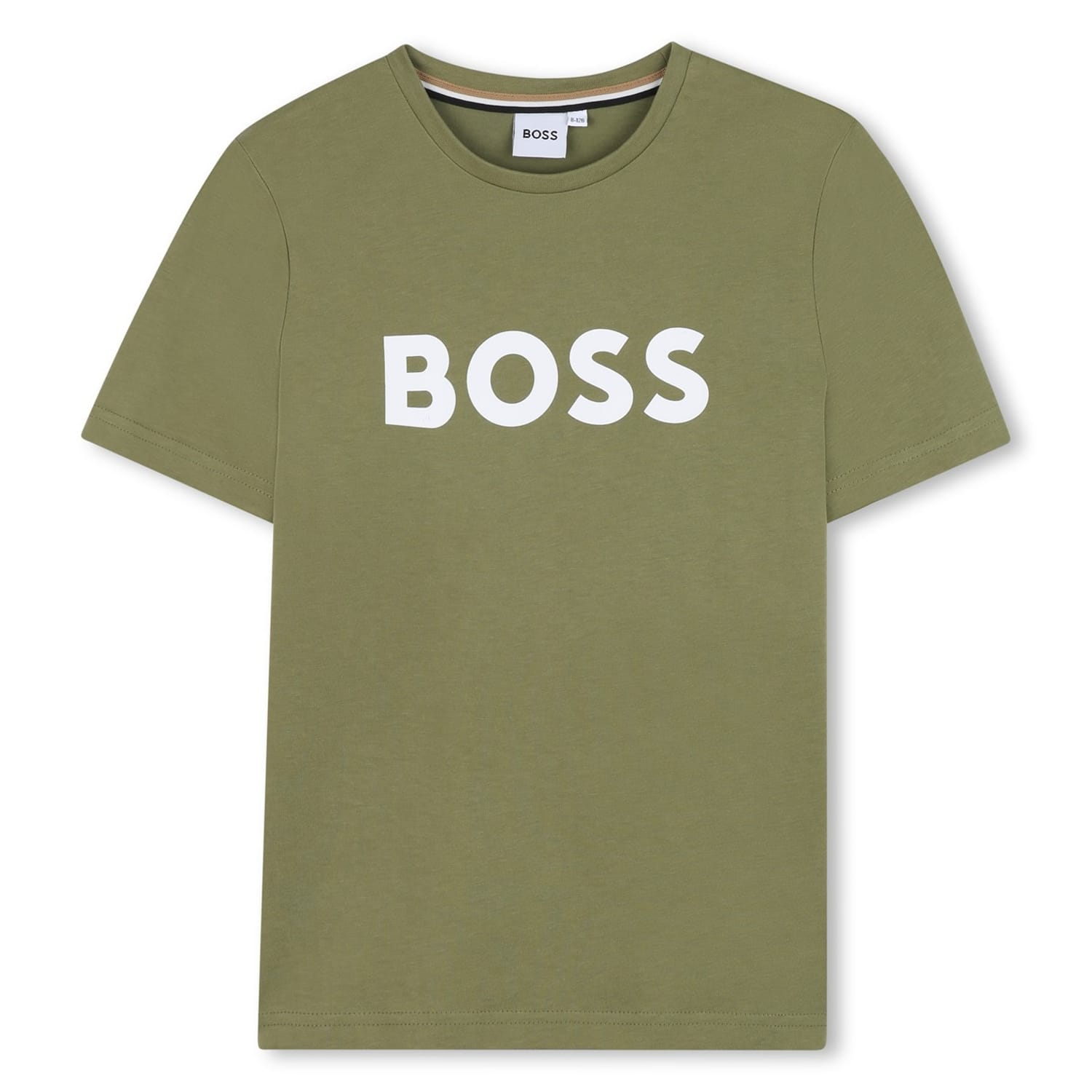 This Boss top from the casual collection features a regular fit and a crew neck. The graphic print is enhanced with lettering and a logo embellishment, adding a stylish touch to your wardrobe. -