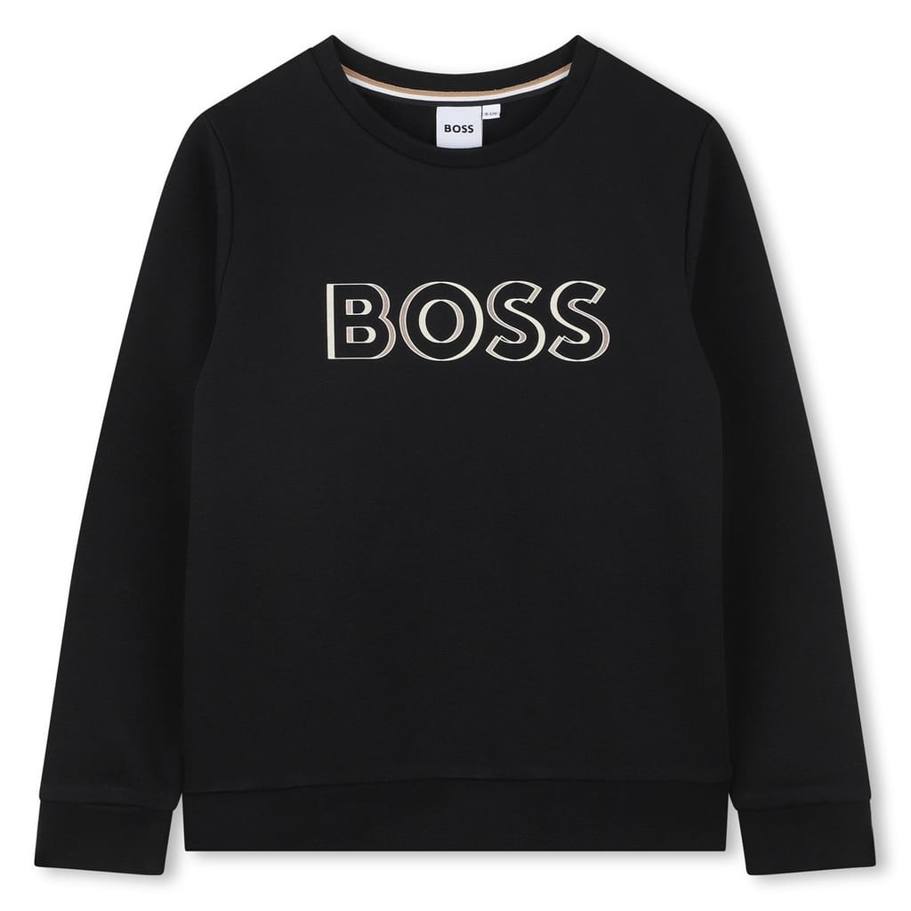This Boss top features a regular fit and a crew neck, adorned with a distinctive logo print. The design is enhanced by the brand's iconic logo embellishment, offering a stylish and contemporary look. -