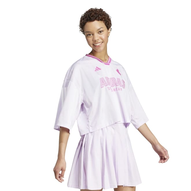 The adidas Tiro cropped top is a stylish addition to your activewear collection. Featuring a solid pattern and a relaxed fit, it offers comfort and ease of movement. The V-neck design and three-quarter sleeves with drop shoulders add a modern touch. Embellished with the iconic three-bar logo and lettering, this top is perfect for those who appreciate subtle branding. -