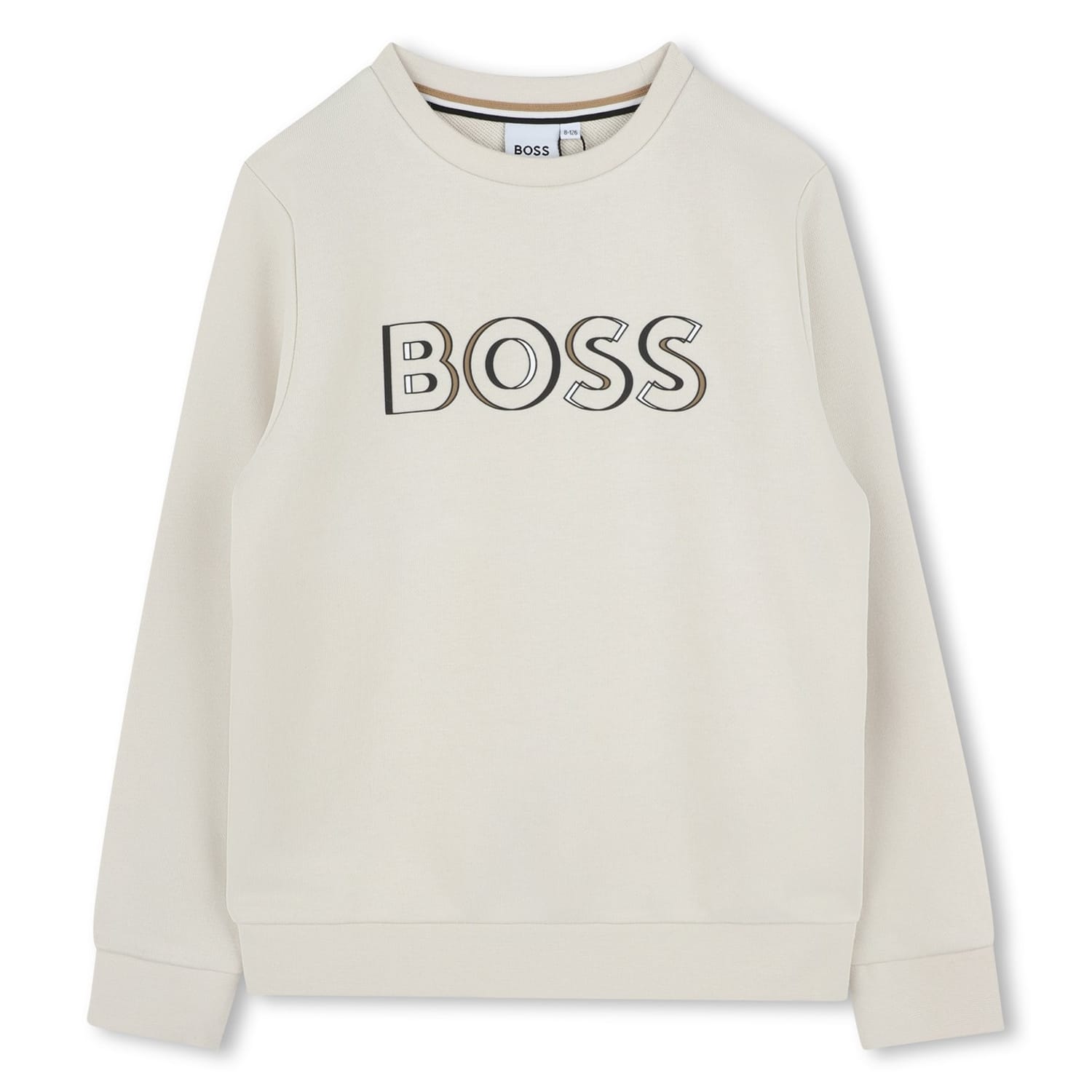 This Boss top features a graphic print and a crew neck, offering a regular fit. The design is enhanced with a logo embellishment, adding a distinctive touch to the overall look. -