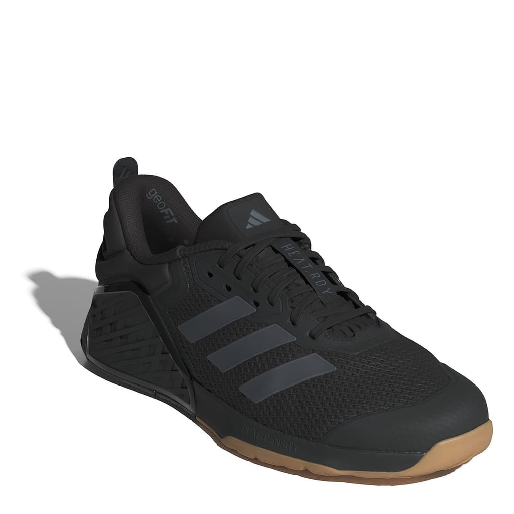 Whether lifting, pushing or pulling, Dropset 3 trainers provide the stable support needed for strength training. A dual-density midsole keeps feet cushioned through intense reps, while a TPU sidewall locks in the midfoot. adidas HEAT.RDY keeps feet cool even when the workout heats up. Wider than standard fit, these trainers comfortably contain any foot swell from exertion. -