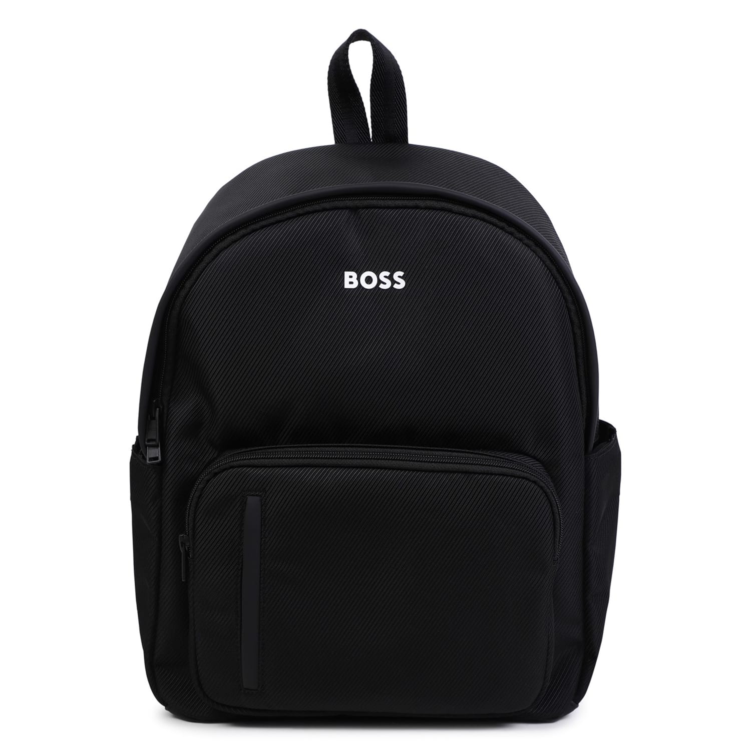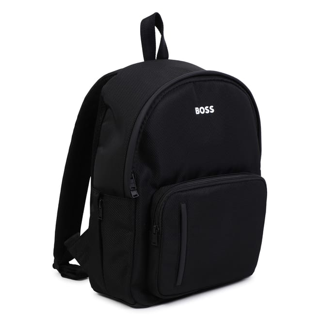 Discover the Boss backpack, a perfect blend of style and functionality. Featuring a ribbed pattern, this backpack is equipped with a secure zipper closure and a convenient top handle. The design includes a logo embellishment and multiple pockets, including a front zipper pocket, ensuring ample storage space for your essentials. -