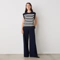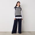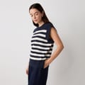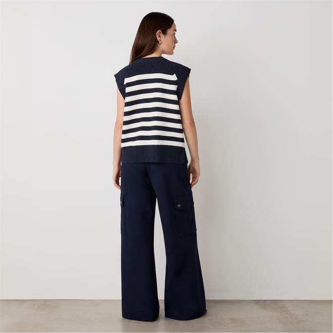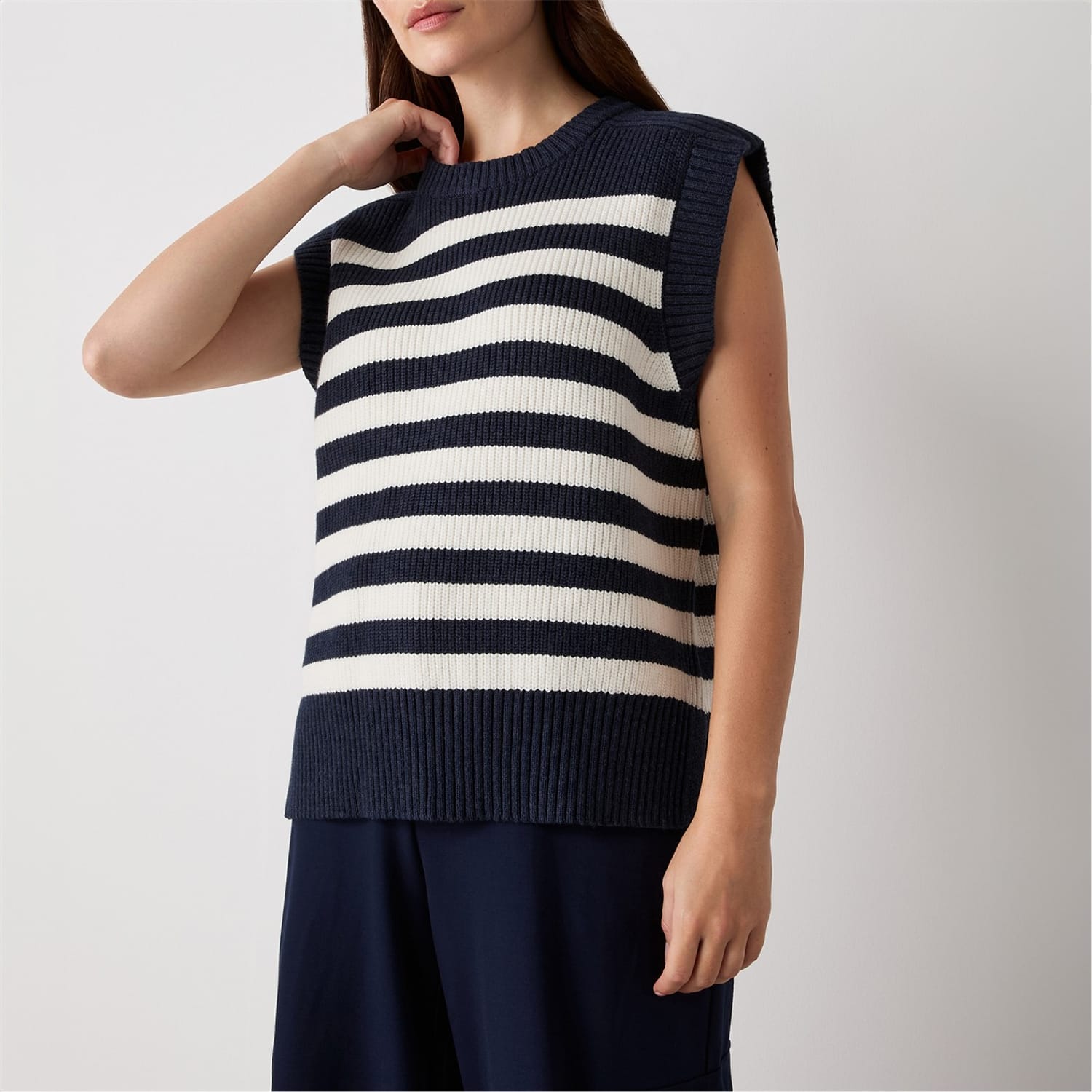 The Finery Lexi gilet features a relaxed fit with a short length, perfect for layering. Its horizontal stripe pattern adds a touch of style, while the straight hem provides a clean finish. Ideal for those seeking a versatile and chic addition to their wardrobe. -