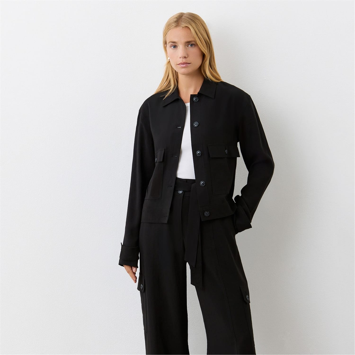 Discover the Finery overshirt, a versatile piece with a relaxed fit and solid pattern. This short-length design features a shirt collar and straight hem, offering a classic look. The button closure adds functionality, while the cuff sleeves and pockets provide practical embellishments. Ideal for layering, this overshirt is a stylish addition to any wardrobe. -