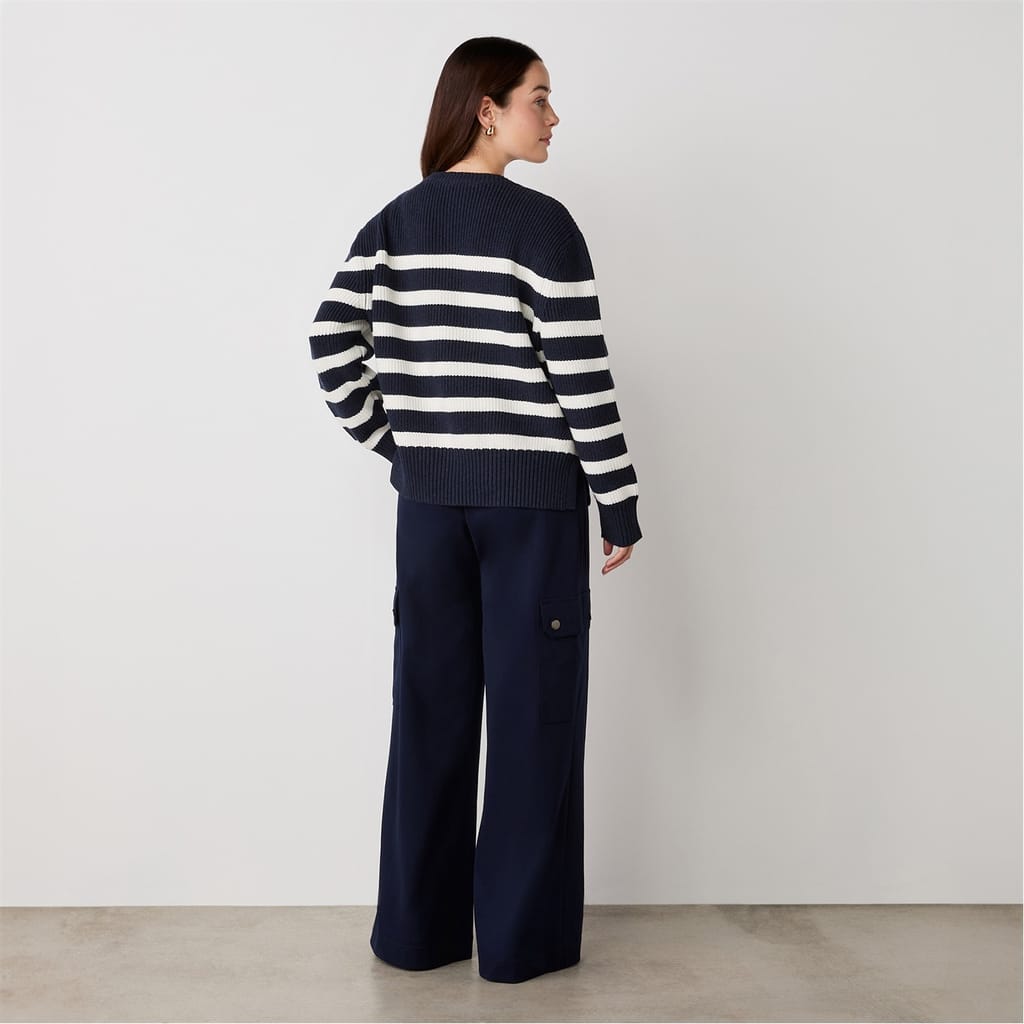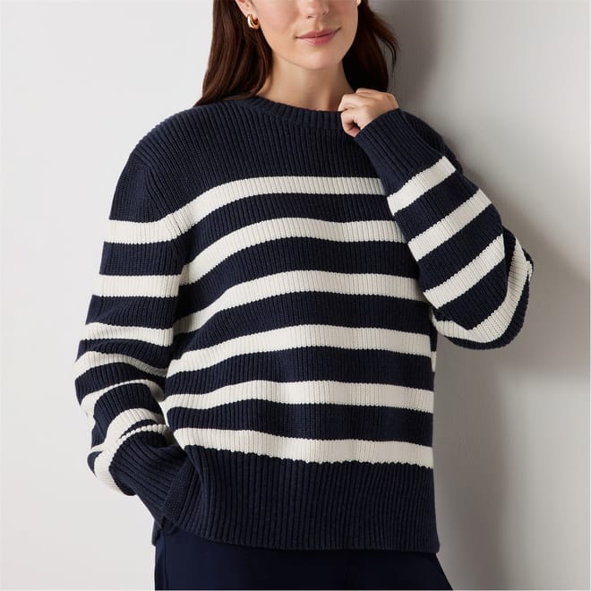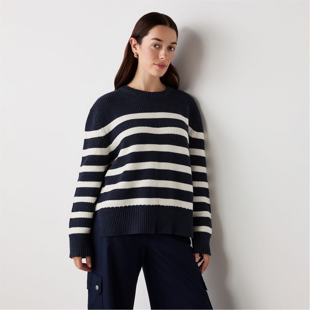 Discover Finery's striped top, perfect for the autumn and winter seasons. This relaxed fit piece features long sleeves with ribbed cuffs and a crew neck. The casual collection design is completed with a subtle logo embellishment, making it a versatile addition to your wardrobe. -