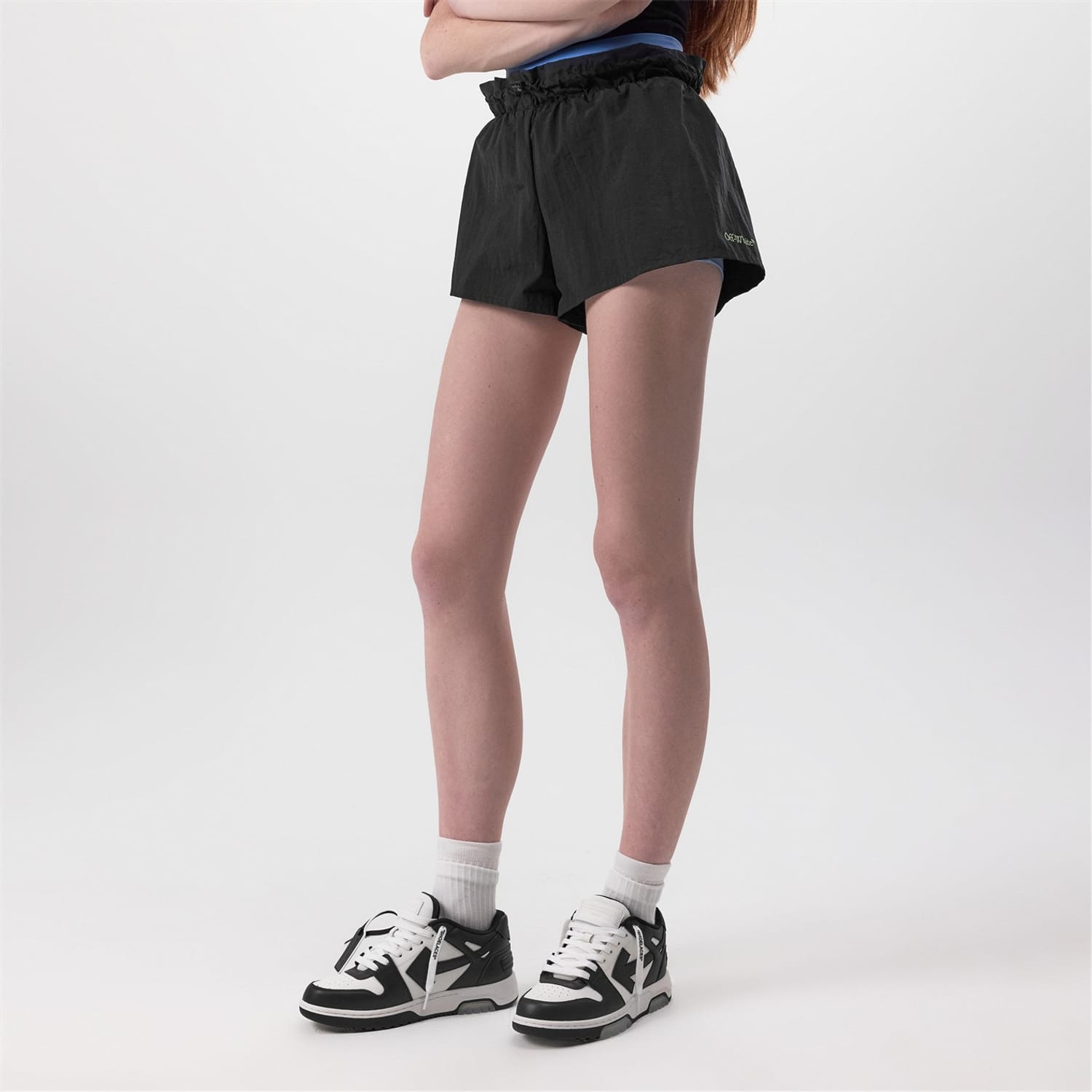 These Off-White Bermuda shorts are a perfect blend of style and comfort. Crafted from woven material, they feature a solid pattern and a convenient drawstring closure. The shorts are adorned with a subtle logo embellishment, adding a touch of brand identity. Ideal for casual collections, these shorts offer a relaxed fit with an elasticated waistband for ease of wear. -