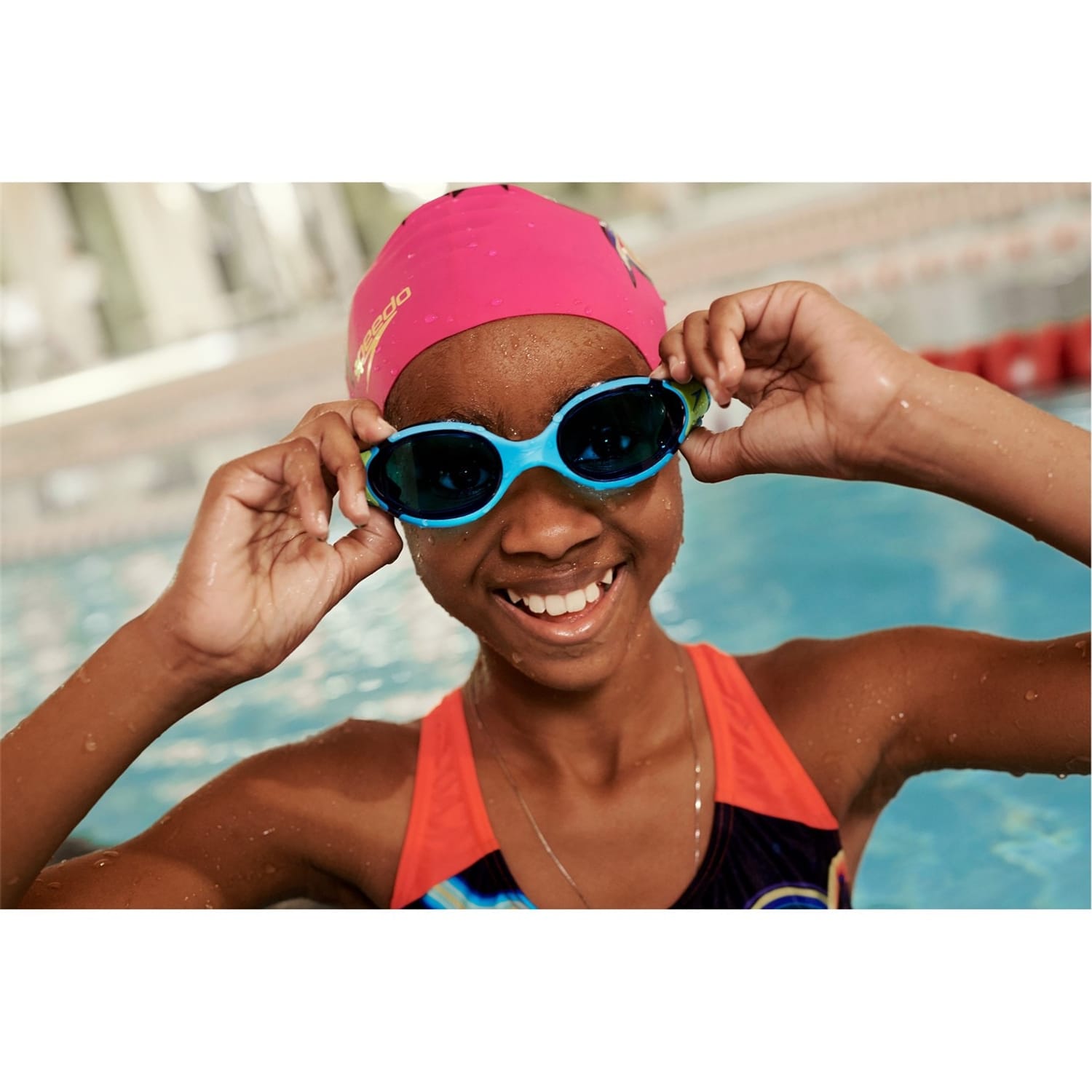 Dive into the pool with Speedo swim goggles, designed for all-season use. These full-rim goggles feature a single bridge style and are crafted from durable plastic. The polycarbonate lenses are equipped with anti-fog coating and UV 400 protection, ensuring clear vision and eye safety. The iconic logo embellishment adds a touch of style, making them a perfect choice for swimming enthusiasts. -