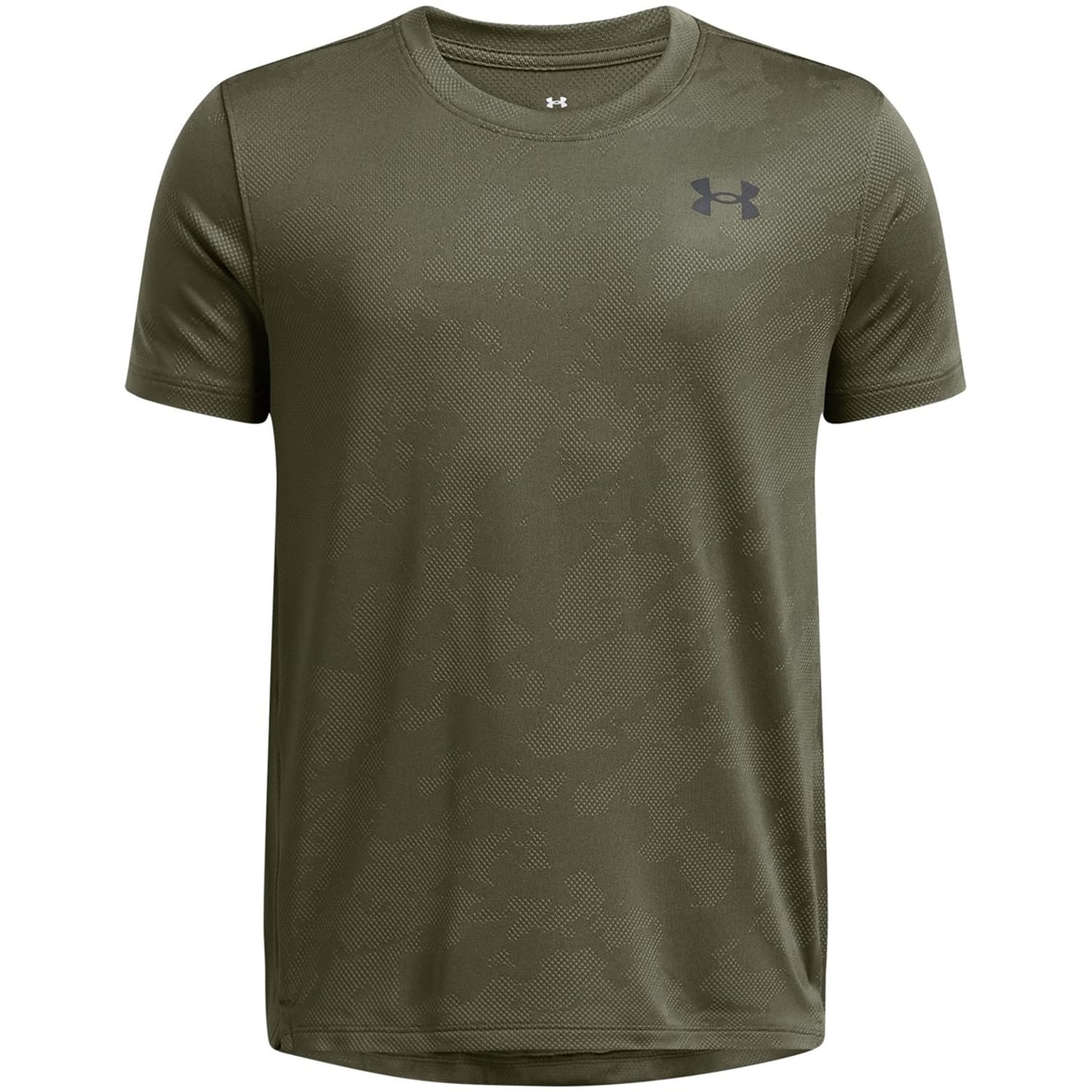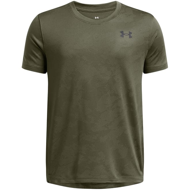 Discover the Under Armour top, a perfect blend of casual and activewear collections. This regular fit top features a crew neck and a striking camo pattern, ideal for performance activities. The design is completed with a distinctive logo embellishment, adding a touch of brand identity. -