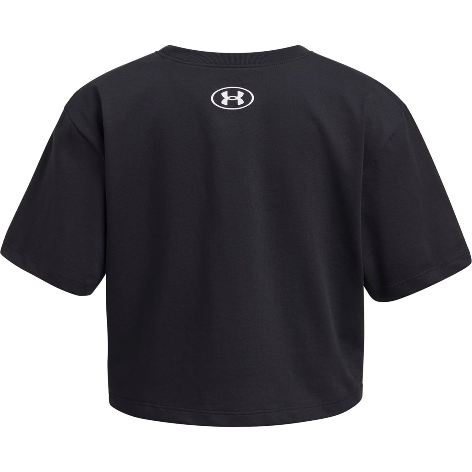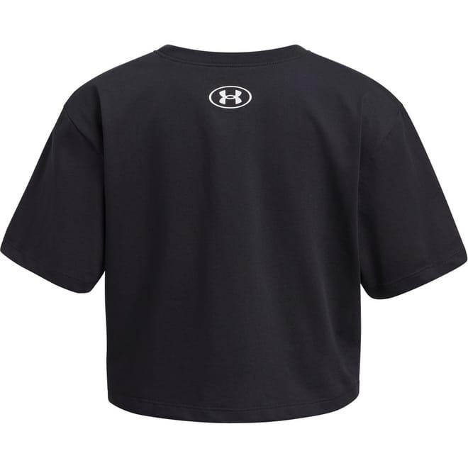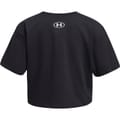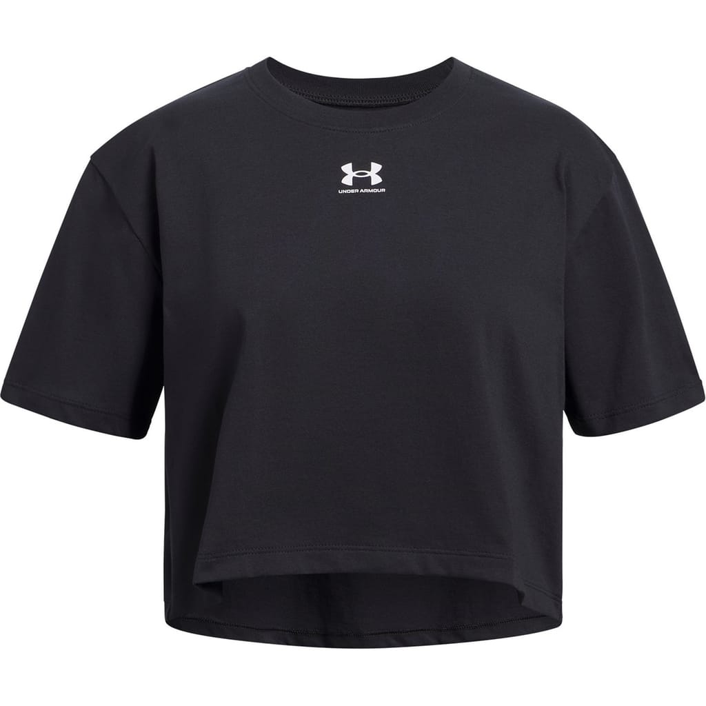 This Under Armour cropped top is designed for activewear enthusiasts. Featuring a crew neck and short sleeves, it offers a regular fit for comfort. The solid pattern is complemented by a subtle logo embellishment, making it a versatile addition to your wardrobe. -