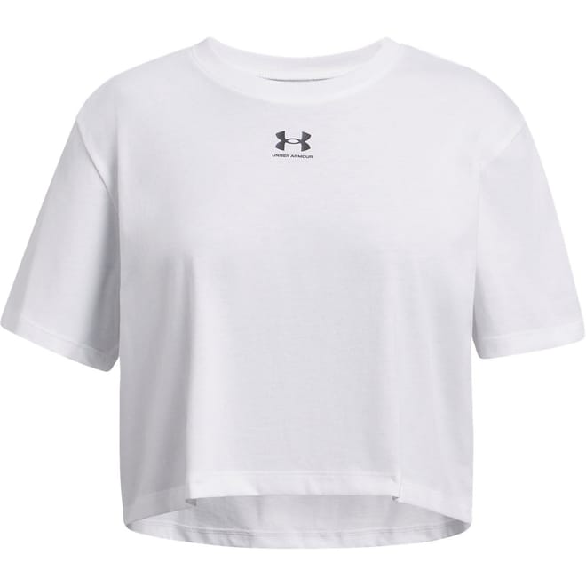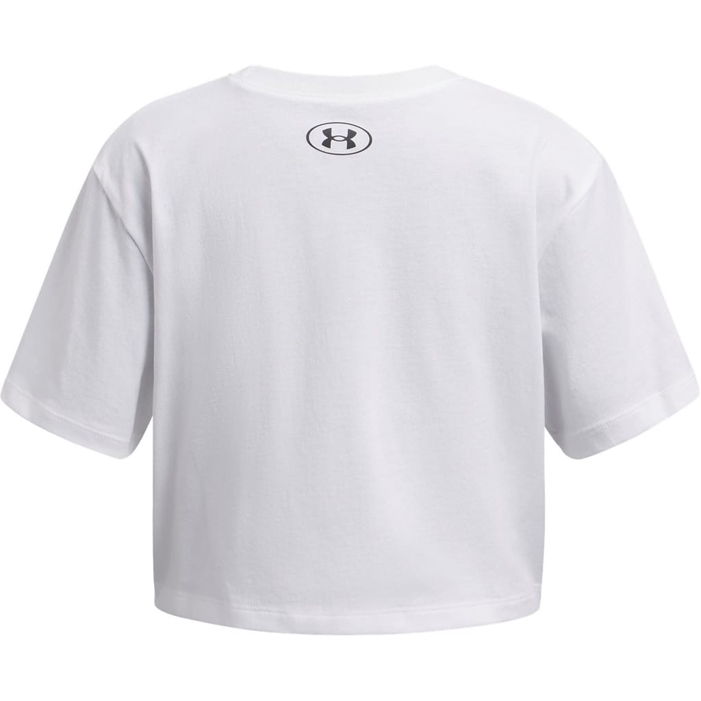 This Under Armour cropped t-shirt is designed with a regular fit and features a classic crew neck. Made for casual comfort, it comes with short sleeves and is embellished with the iconic logo, adding a touch of brand identity. Perfect for those seeking a blend of style and functionality in their everyday wardrobe. -