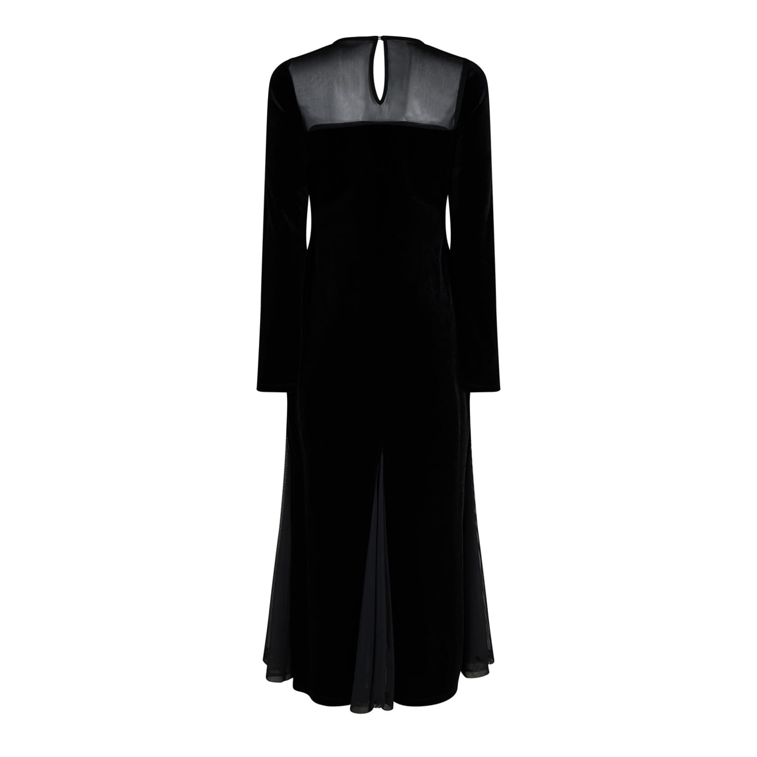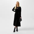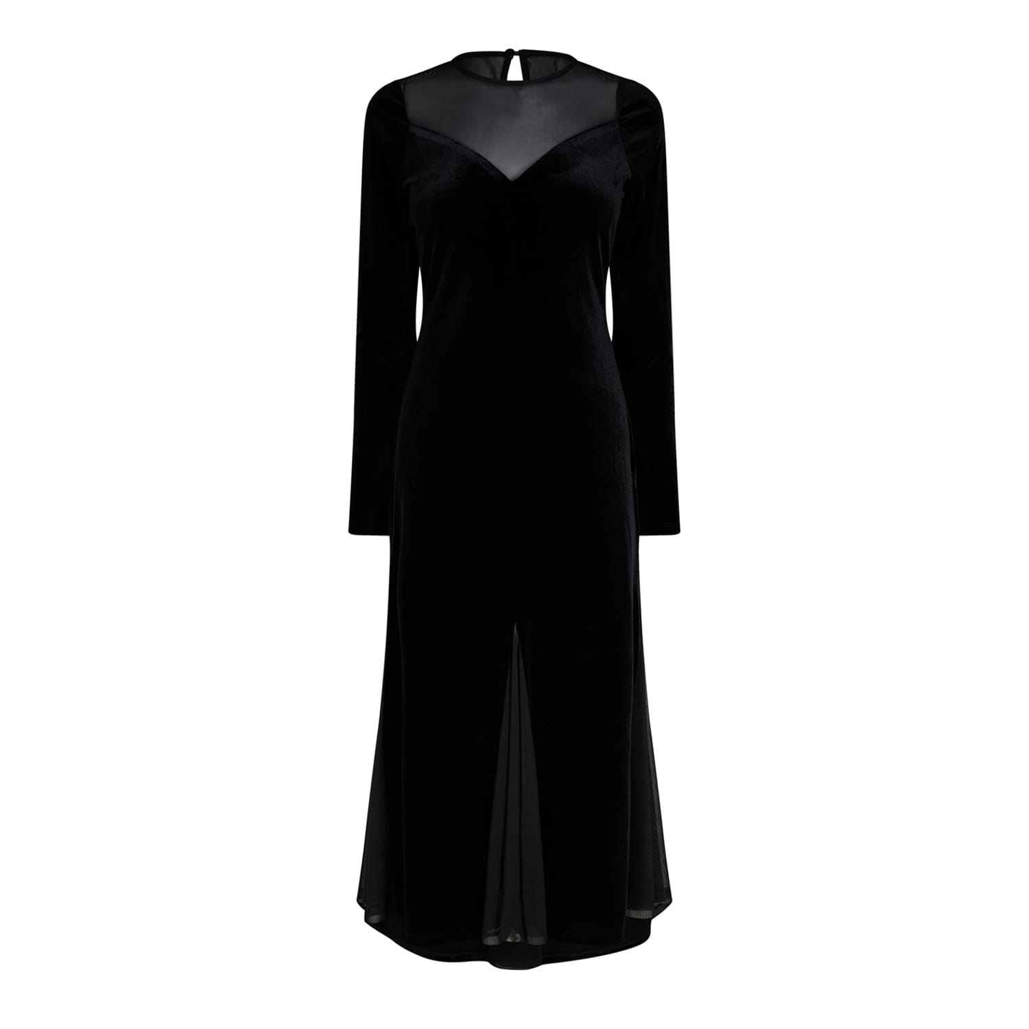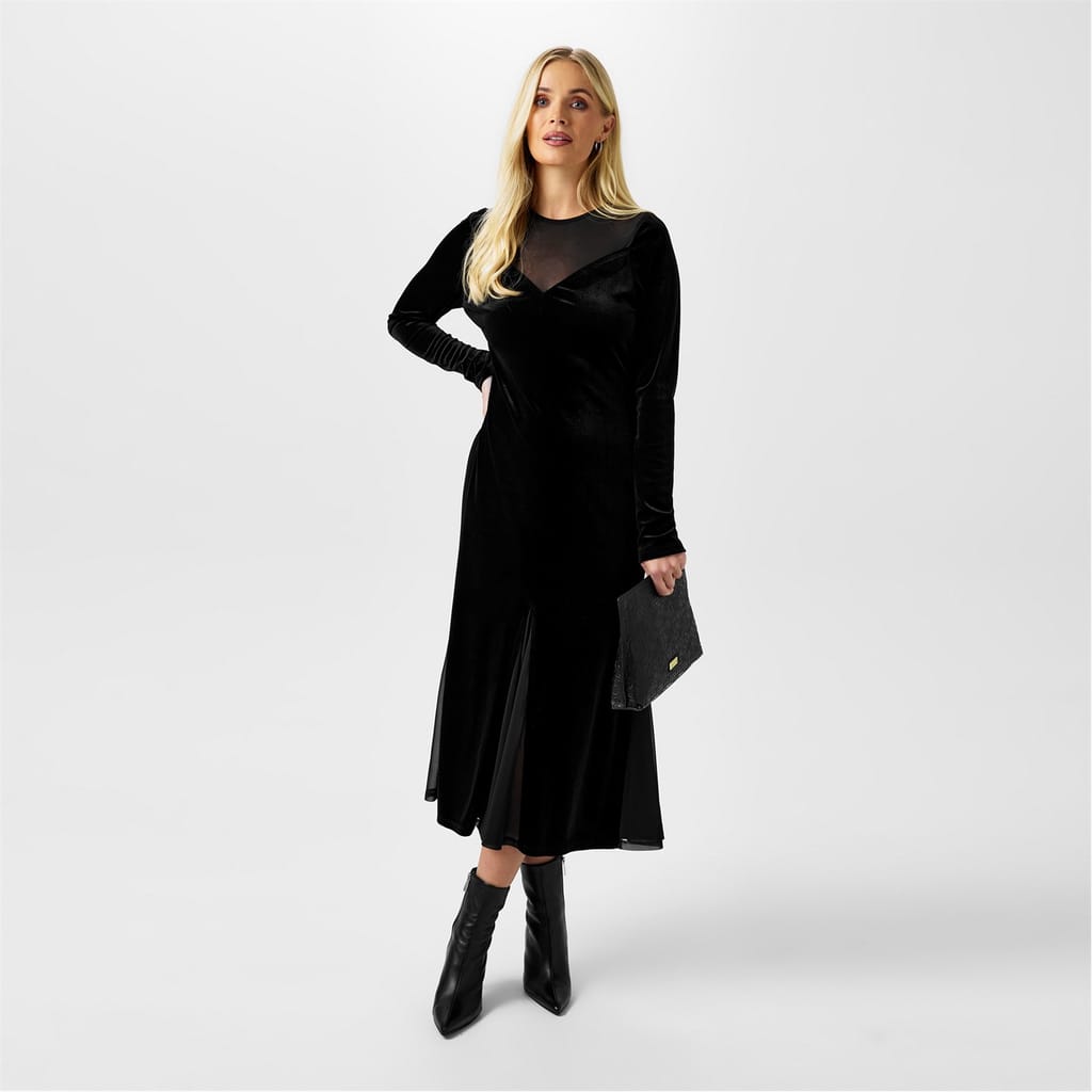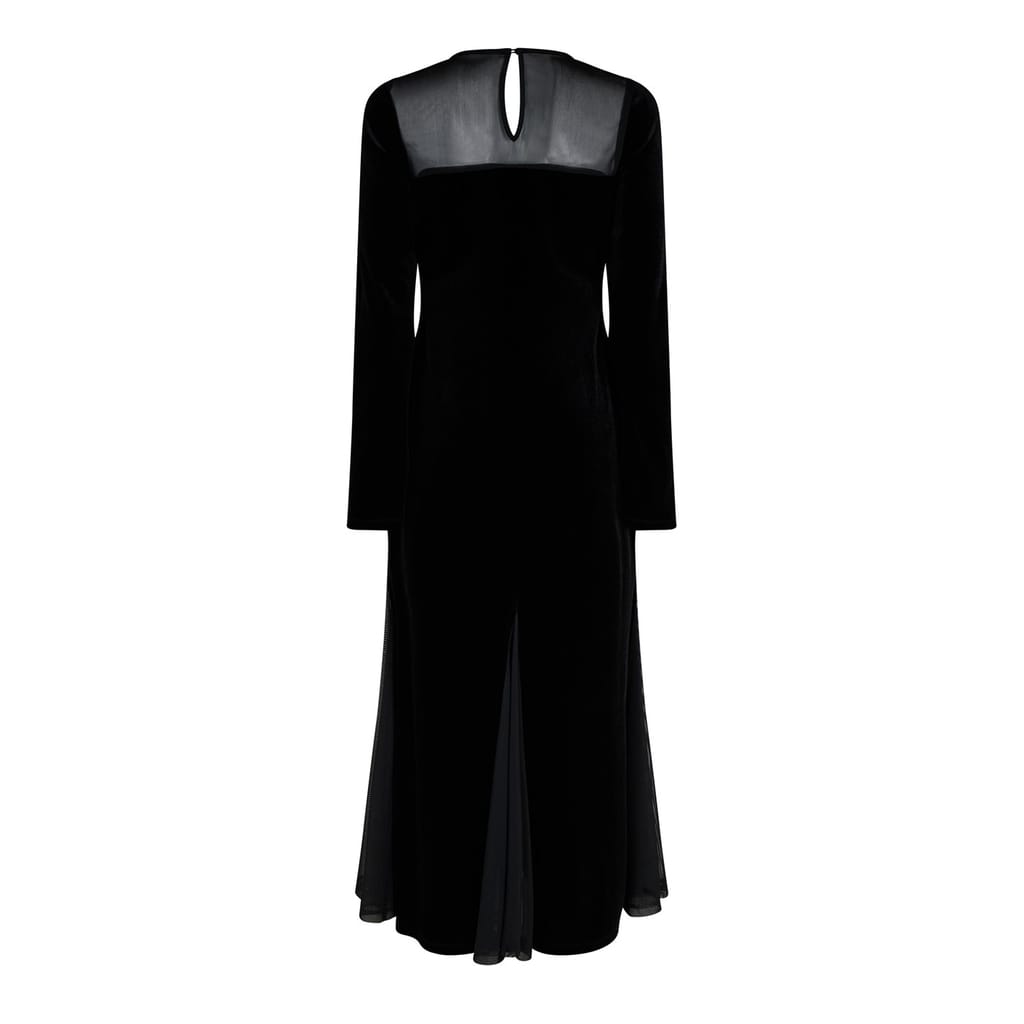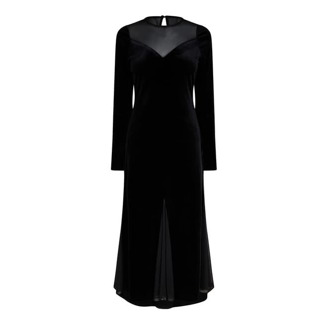 Mark 60 years of Biba's iconic fashion legacy with the Biba Archive Velvet Dress. This luxurious velvet dress is designed to make a statement at any event. Featuring a sheer panel and a sweetheart neckline, this dress elegantly combines classic elegance with modern allure. The long sleeves and sheer godet panels on the hem add a touch of sophistication and allure. With a back neck keyhole and a hidden zip, this midi-length dress ensures a seamless and flattering fit. Perfect for making a statement at any special event.