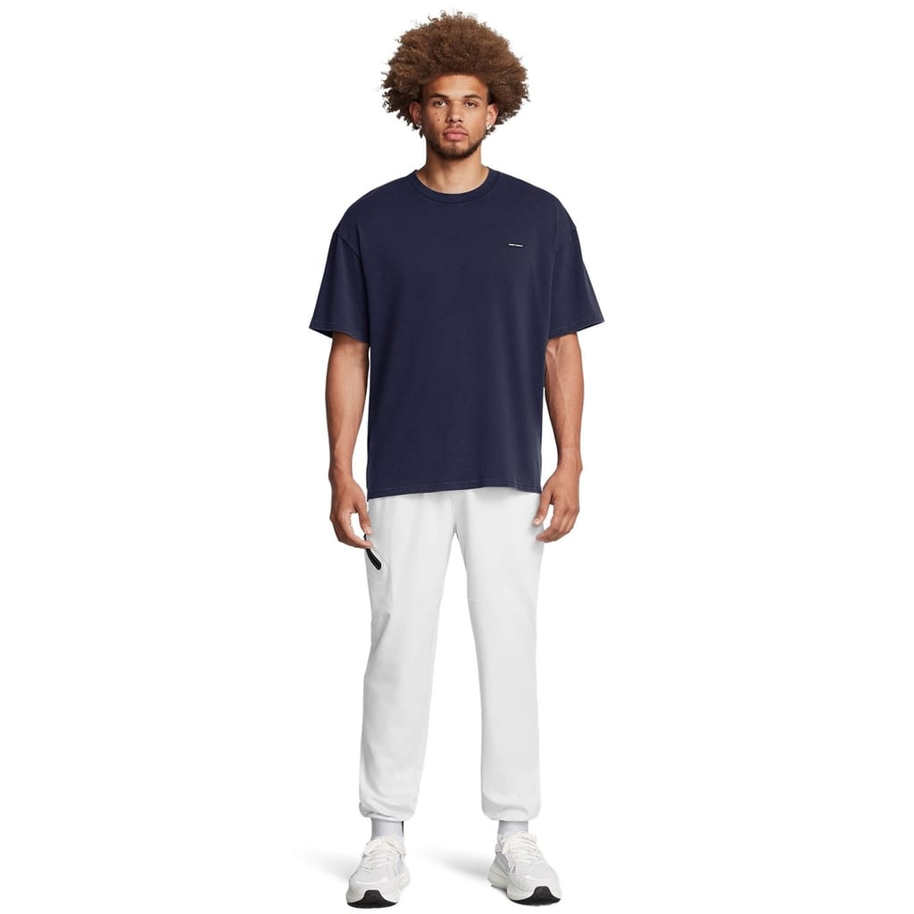 Under Armour joggers are designed for both casual and activewear collections. These woven joggers feature a drawstring closure, making them ideal for running. The design includes a logo and practical side zip pockets for added convenience. -