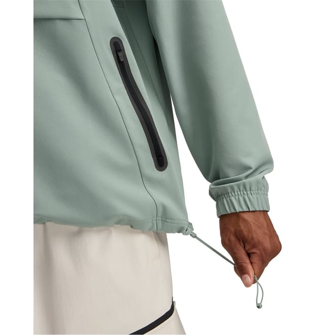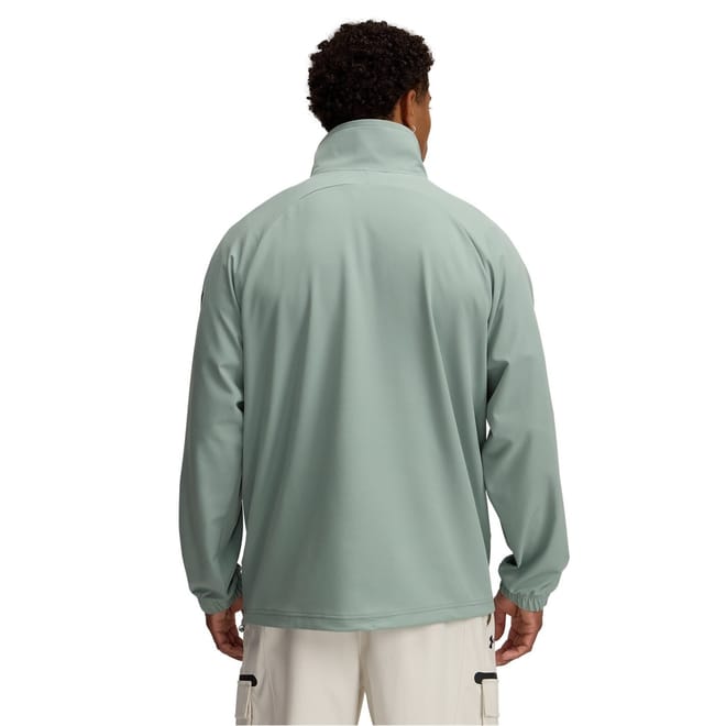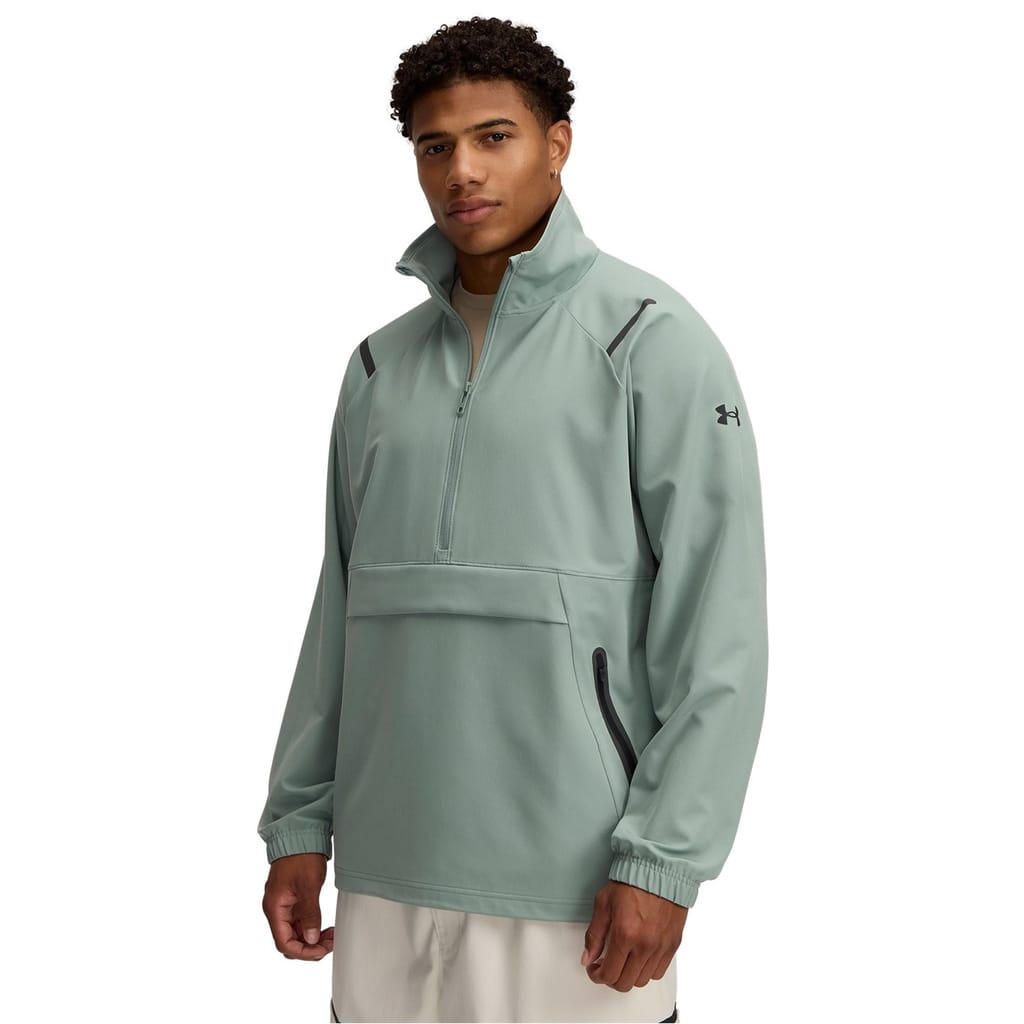 The Under Armour anorak jacket is designed for performance and features a high neck. This solid performance jacket comes with a relaxed fit and raglan sleeves, offering ease of movement. It is equipped with a zipper closure and elasticated cuffs for a secure fit. The design includes a logo and zipped pocket, ensuring functionality and style. -