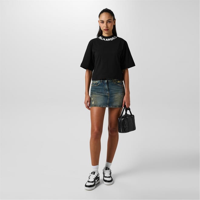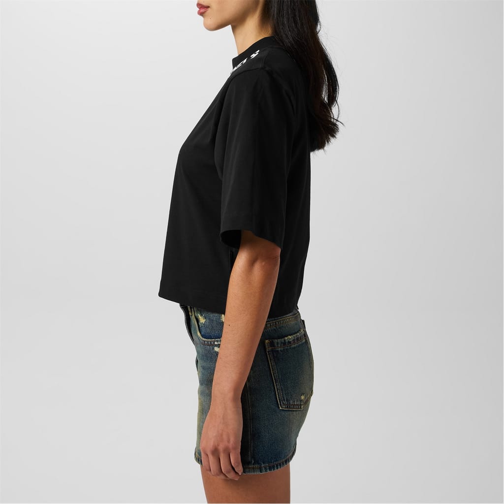 This Palm Angels t-shirt is a stylish addition to your casual collection. Featuring a cropped length and a mock neck, it provides a contemporary twist. The t-shirt comes with short sleeves and a regular fit, ensuring comfort and ease. A standout logo embellishment adds a distinctive touch to this essential top. -
