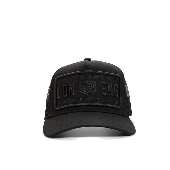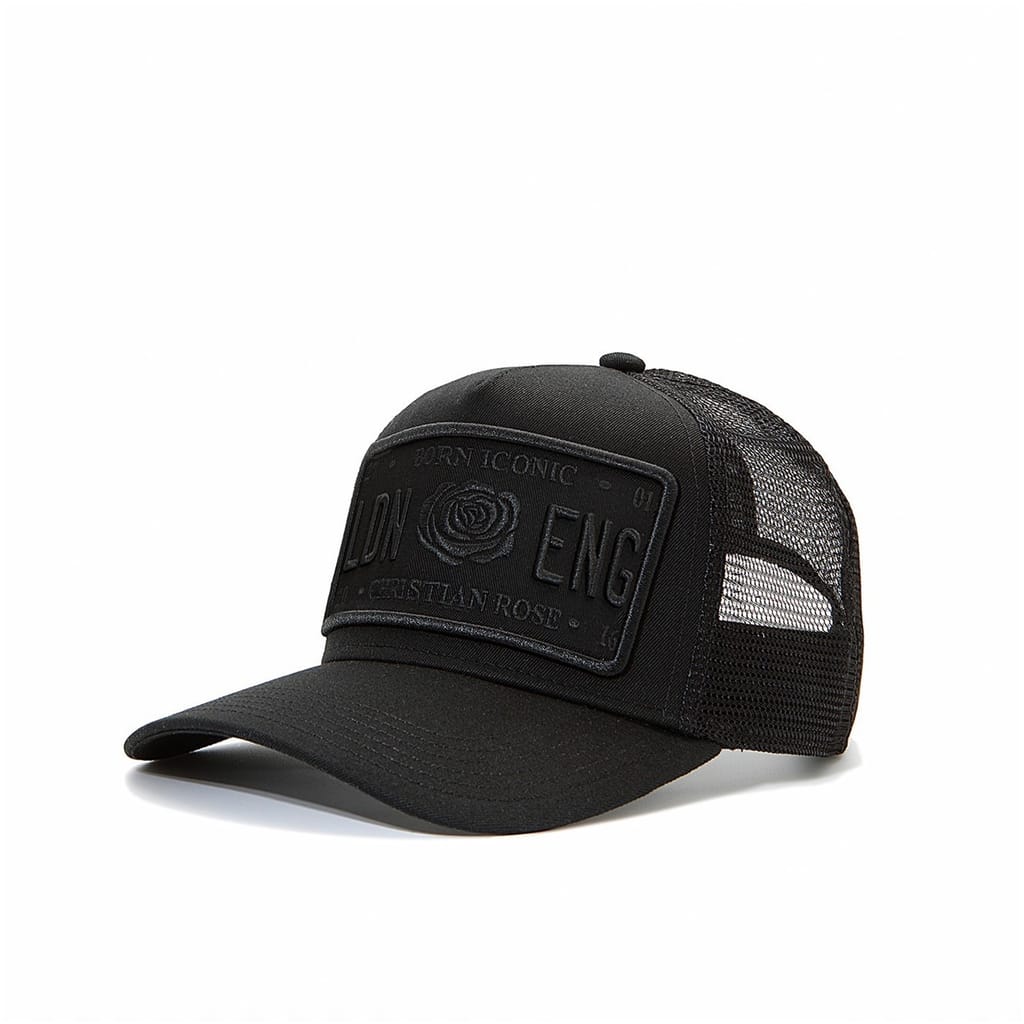 This Christian Rose trucker cap is designed for infants, featuring a snap-back closure for easy adjustment. The cap is adorned with distinctive lettering and a logo, adding a stylish touch. Perfect for little ones, this cap combines functionality with a trendy design. -