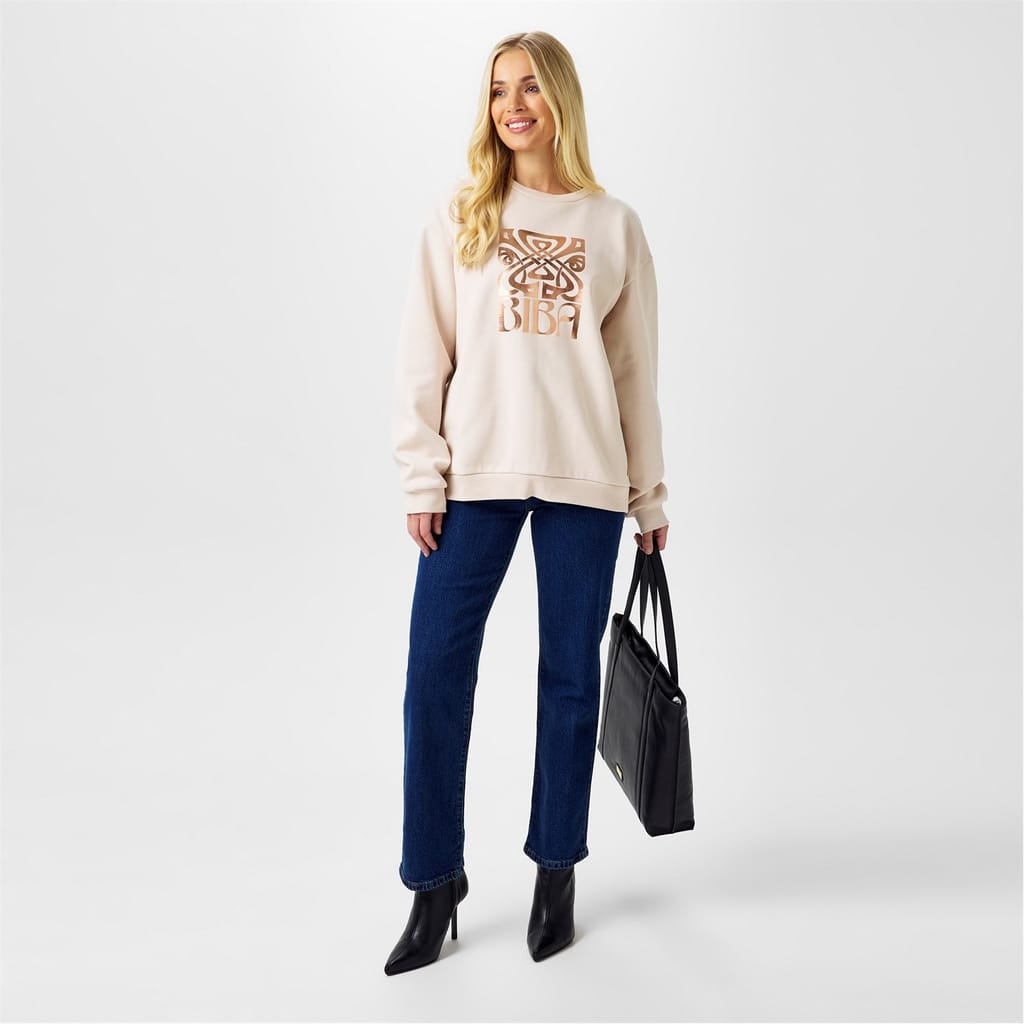 This Biba sweatshirt is a comfortable addition to your wardrobe. Crafted with a crew neck, the long sleeves and ribbed cuffs provide a snug fit. It features a logo print design, adding a stylish touch to the regular fit. The ribbed collar enhances its classic look, making it a versatile piece for casual wear. -