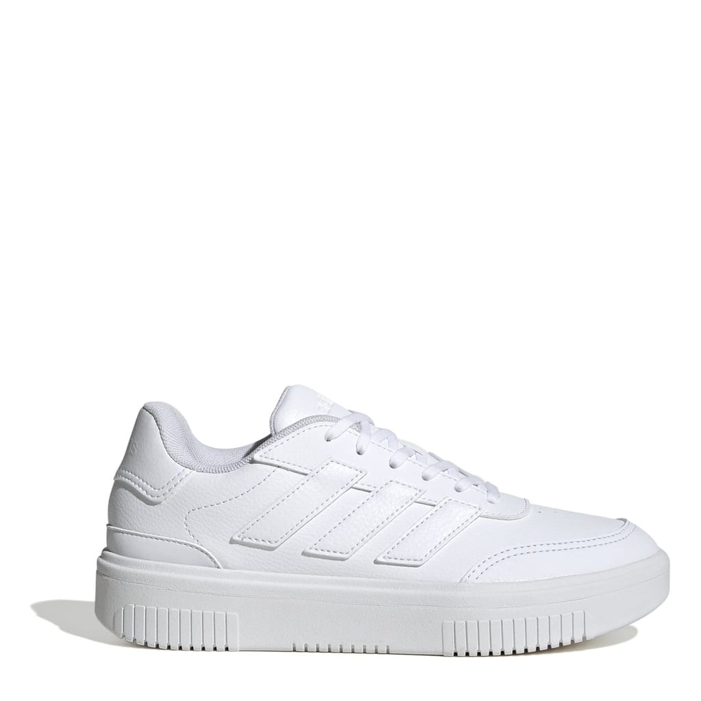 Playful and fresh, these adidas Courtblock Trainers offer a bold style that's never over the top. The stacked midsole gives a little extra height, while the synthetic leather upper and rubber cupsole team up for all-day comfort. Whether you're pairing them with your favourite jeans or a casual dress, these shoes help you make a subtle statement.