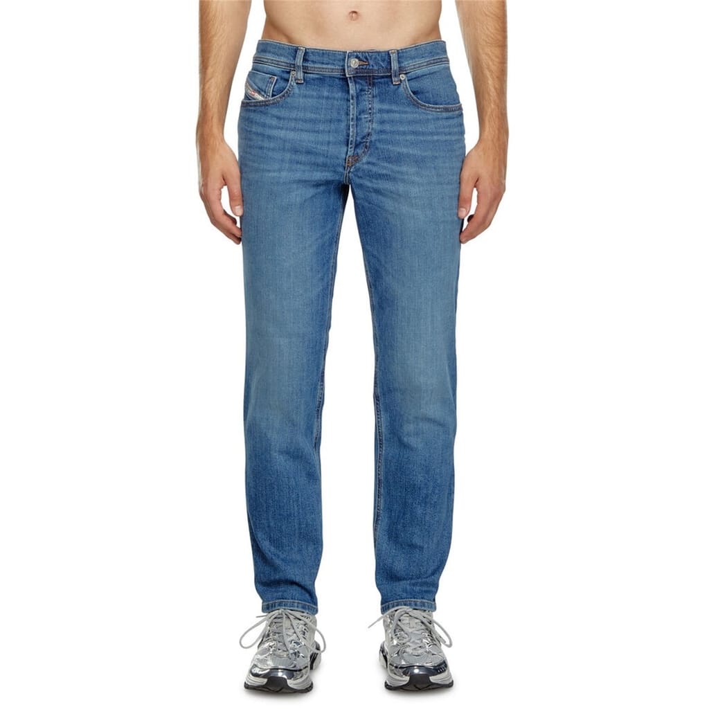 Discover Diesel's jeans featuring a tapered fit and a classic five-pocket design. These jeans come with a zip fly and button closure, ensuring a secure fit. The iconic Diesel logo and logo patch add a distinctive touch, making these jeans a stylish addition to your wardrobe. -