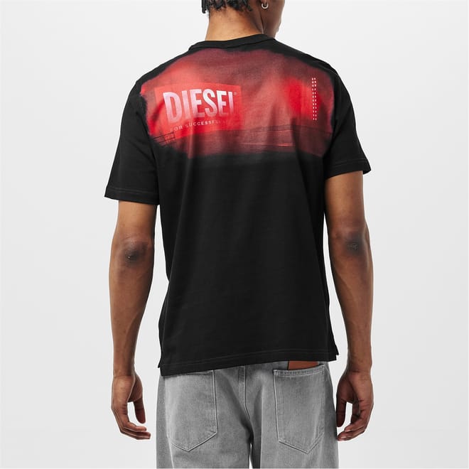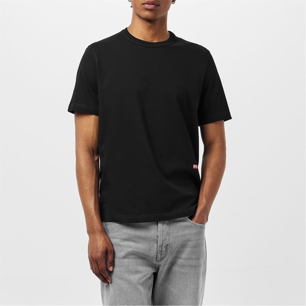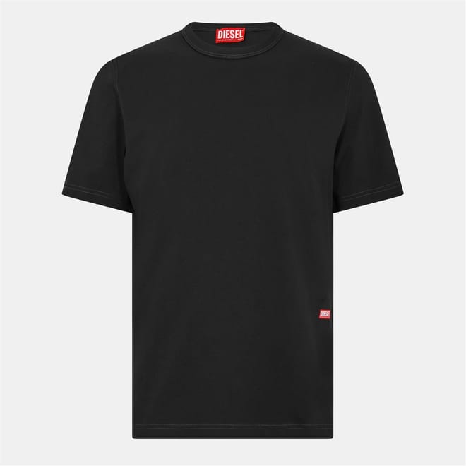 This Diesel top features a regular fit with a crew neck and short sleeves. The solid pattern is complemented by a subtle logo embellishment, adding a touch of brand identity. A slit detail enhances the design, making it a versatile addition to your wardrobe. -