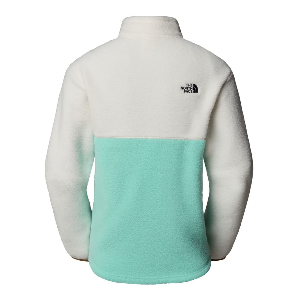 The North Face fleece jacket features a mock neck and a full zipper closure, offering a regular fit. It showcases a stylish color block pattern and includes a chest pocket with a logo embellishment. The jacket is designed with a straight hem and ribbed cuffs, providing both comfort and functionality. -