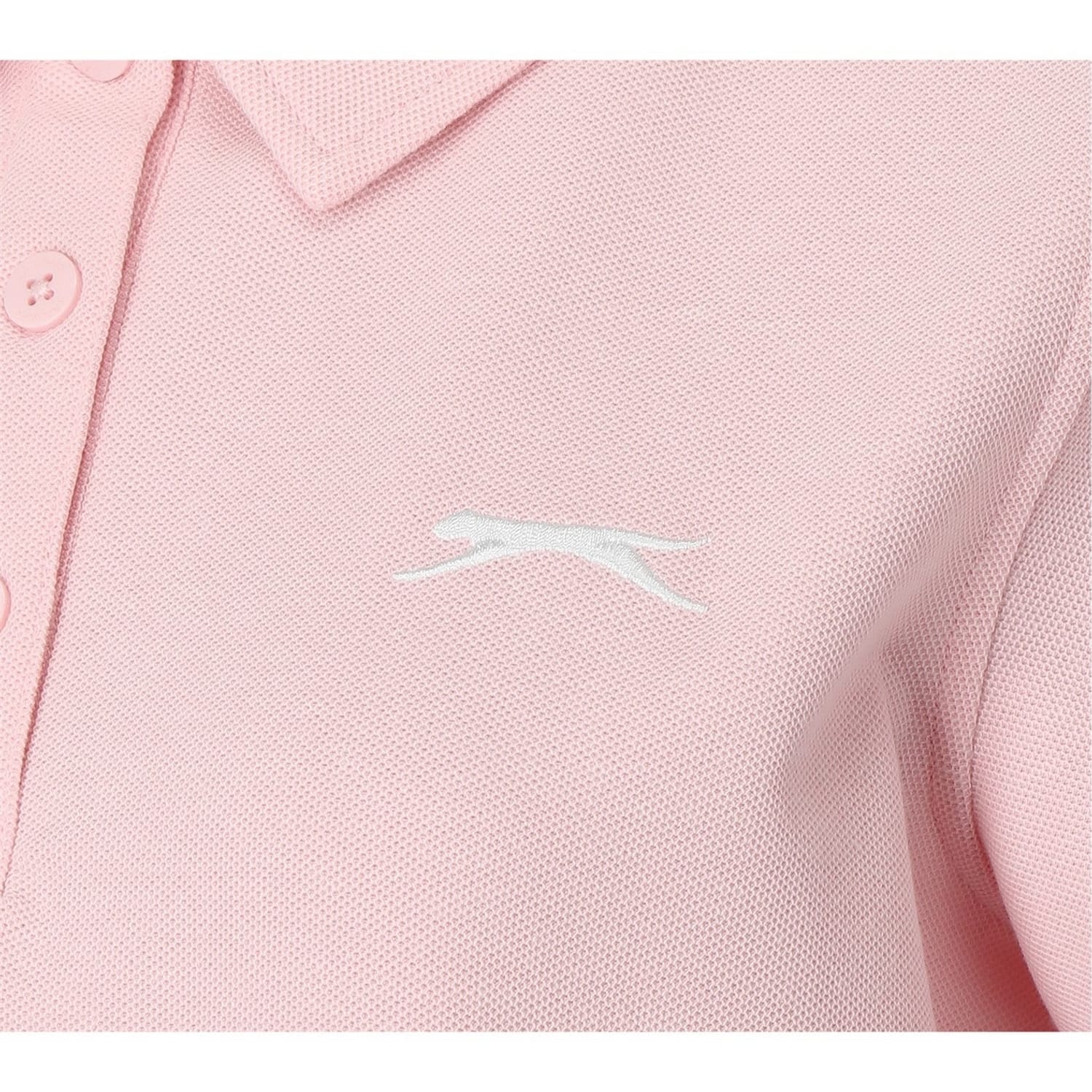 Slazenger Polo Shirt Ladies. Refresh your casual everyday polo shirt collection with this Slazenger Plain Polo Shirt Ladies which is crafted with a classic polo with self-fabric collar and a three-button placket for a classic look. It features short sleeves with flatknit trims for comfort and easy wear. This polo shirt is designed with a signature embroidery logo and is complete with Slazenger branding. 65% polyester / 35% cotton. -