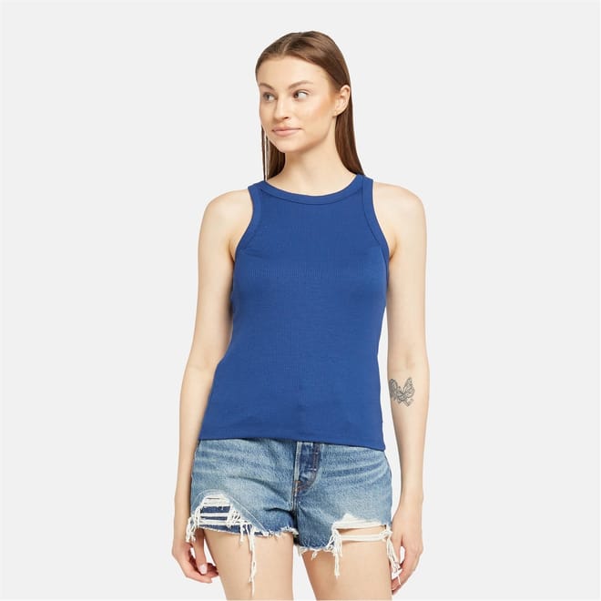 Discover the Levi's sleeveless top, featuring a high neck and a ribbed pattern. Designed in a slim fit, this piece offers a modern and stylish look. Perfect for those who appreciate a blend of comfort and contemporary fashion. -