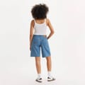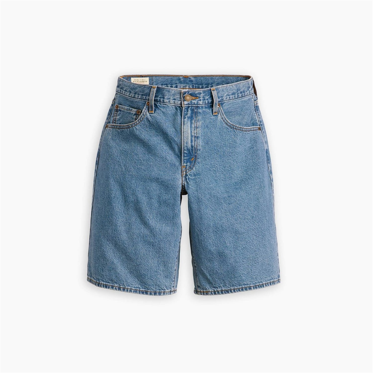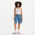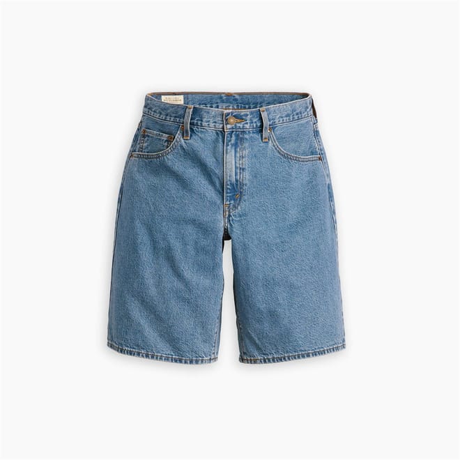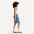 Levi's solid jean shorts feature a classic zip fly and button closure. Designed with a five-pocket style, these casual shorts are adorned with a subtle logo, offering both functionality and a touch of brand identity. Perfect for those seeking a timeless and versatile addition to their wardrobe. -