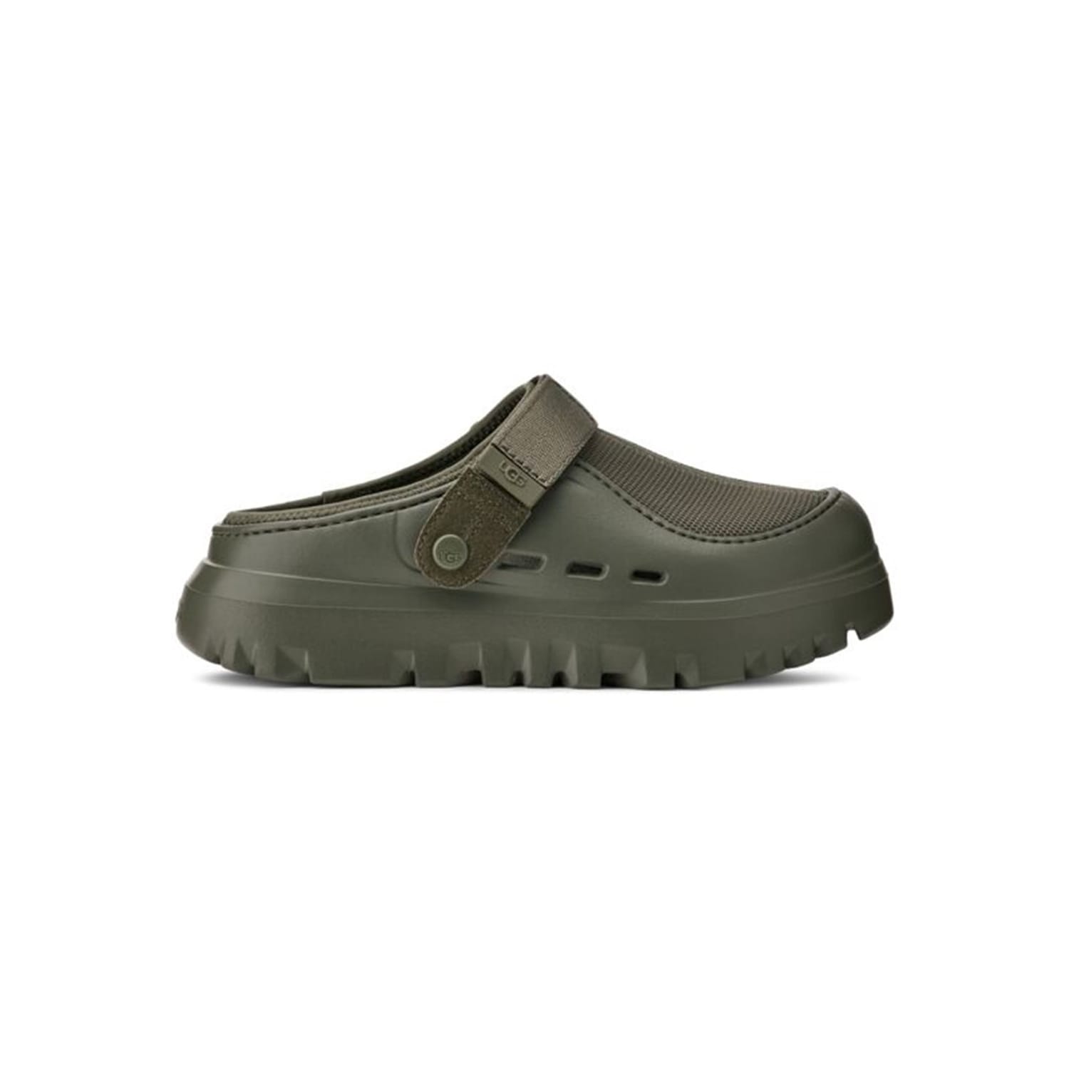 Discover the UGG Shuv clogs, a unique addition to your footwear collection. These shoes feature a round toe design, offering both comfort and style. The UGG logo adds a touch of authenticity to this distinctive pair. Perfect for those seeking a blend of practicality and brand recognition in their everyday footwear. -