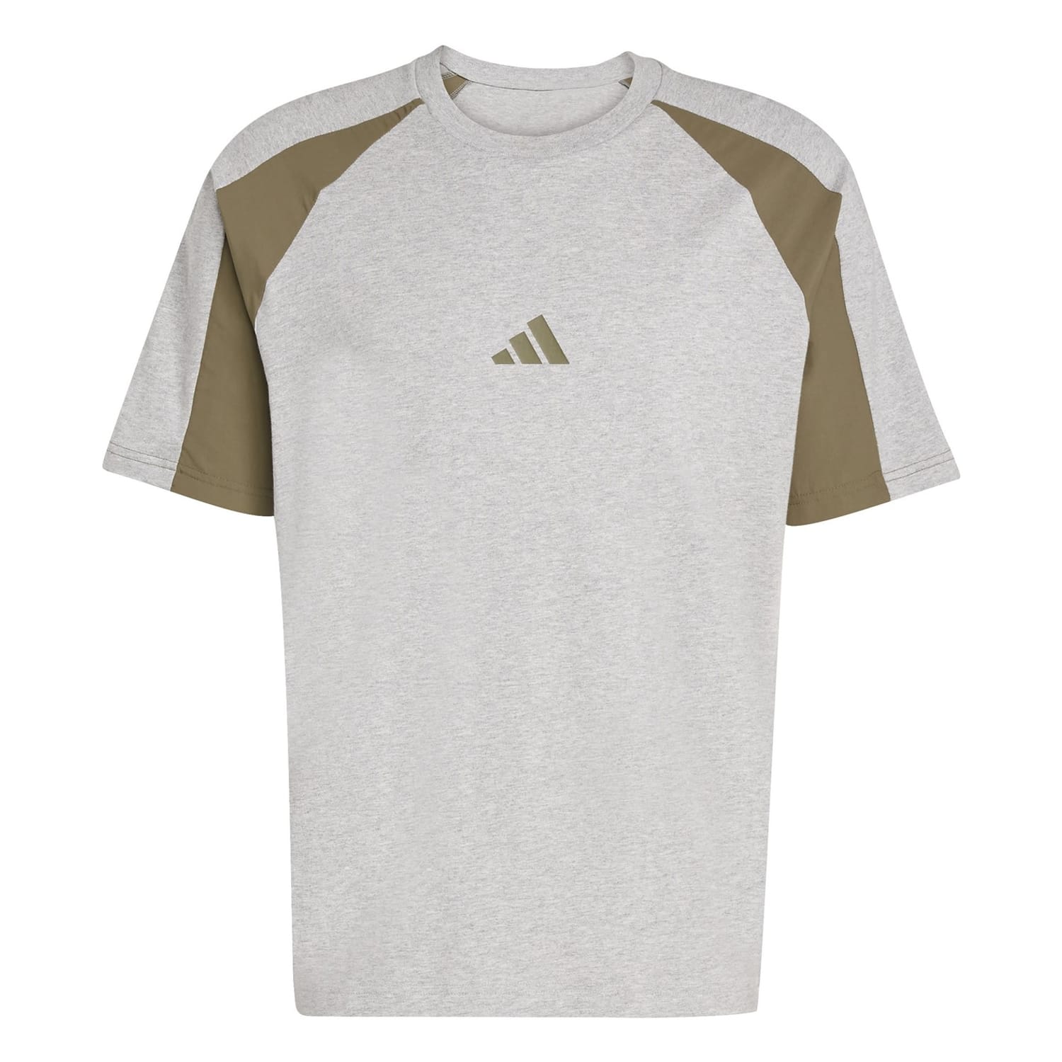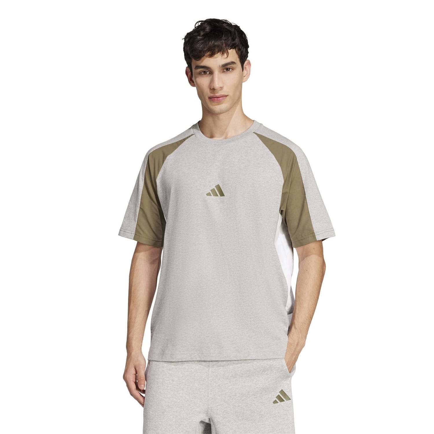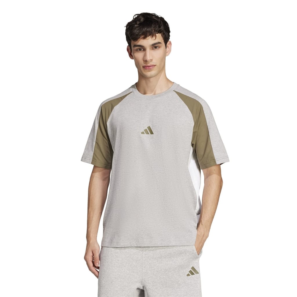 This adidas top from the casual collection features a regular fit and short sleeves. The crew neck design is complemented by a stylish color block pattern. A subtle logo embellishment adds a touch of brand identity to this versatile piece. -