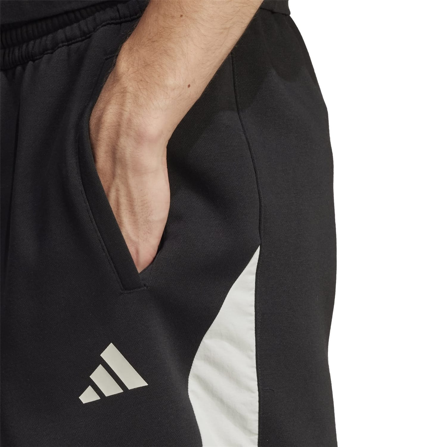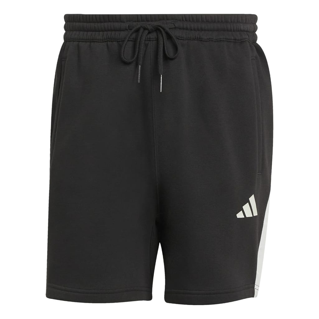 These adidas athletic shorts feature a solid pattern and a convenient drawstring closure. The design is completed with a subtle logo embellishment, offering a sleek and sporty look. -