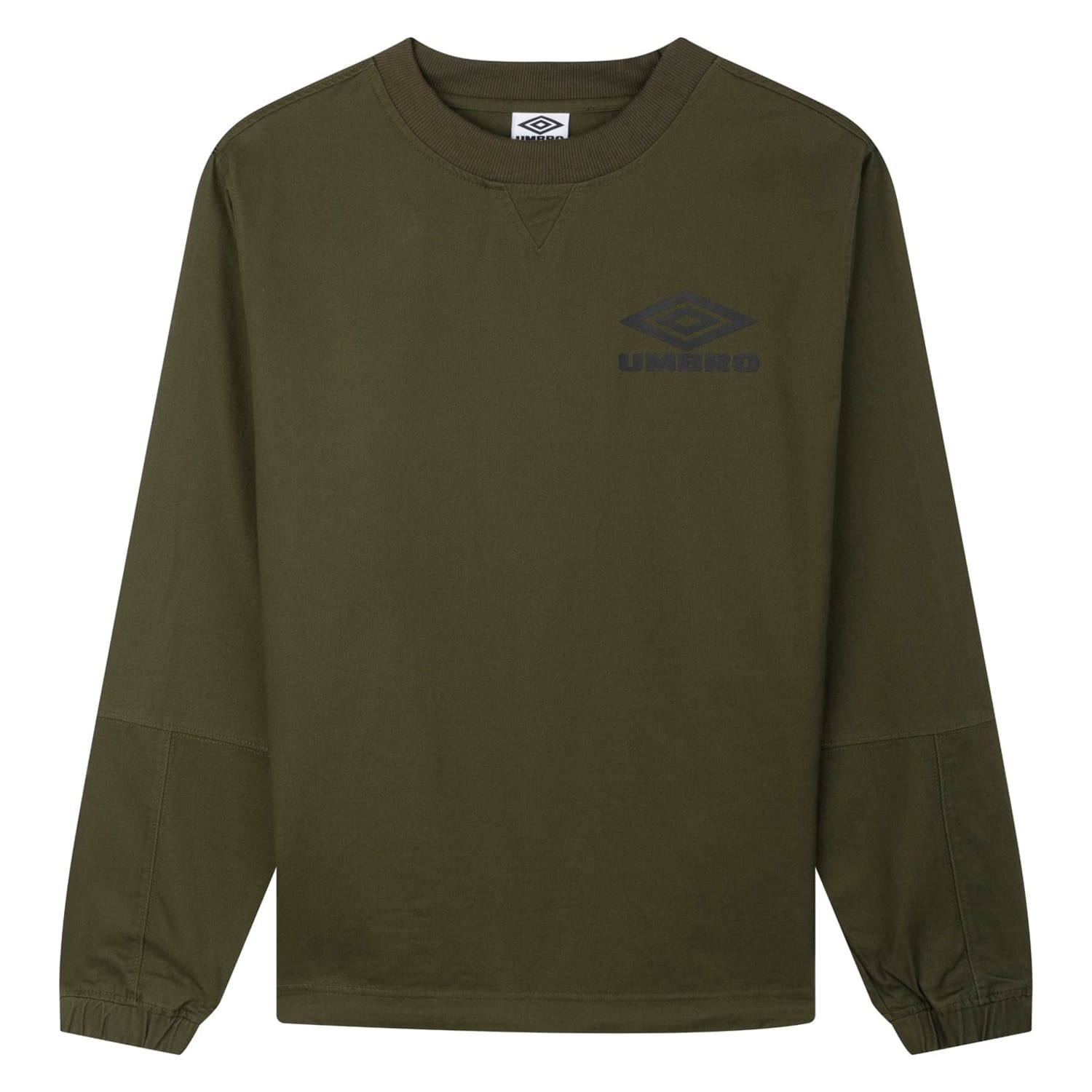 This Umbro sweatshirt combines style and comfort with its long sleeves and crew neck design. Crafted in a regular fit, it features a ribbed collar and elasticated cuffs for a perfect finish. The sweatshirt is adorned with the iconic Umbro logo, adding a touch of brand identity. -