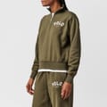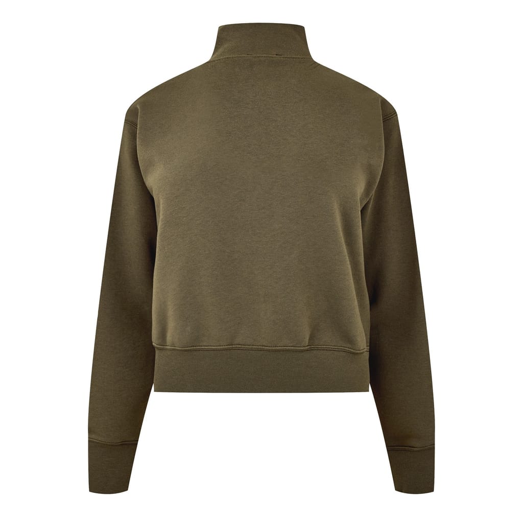 - Ribbed trims and a straight hem.