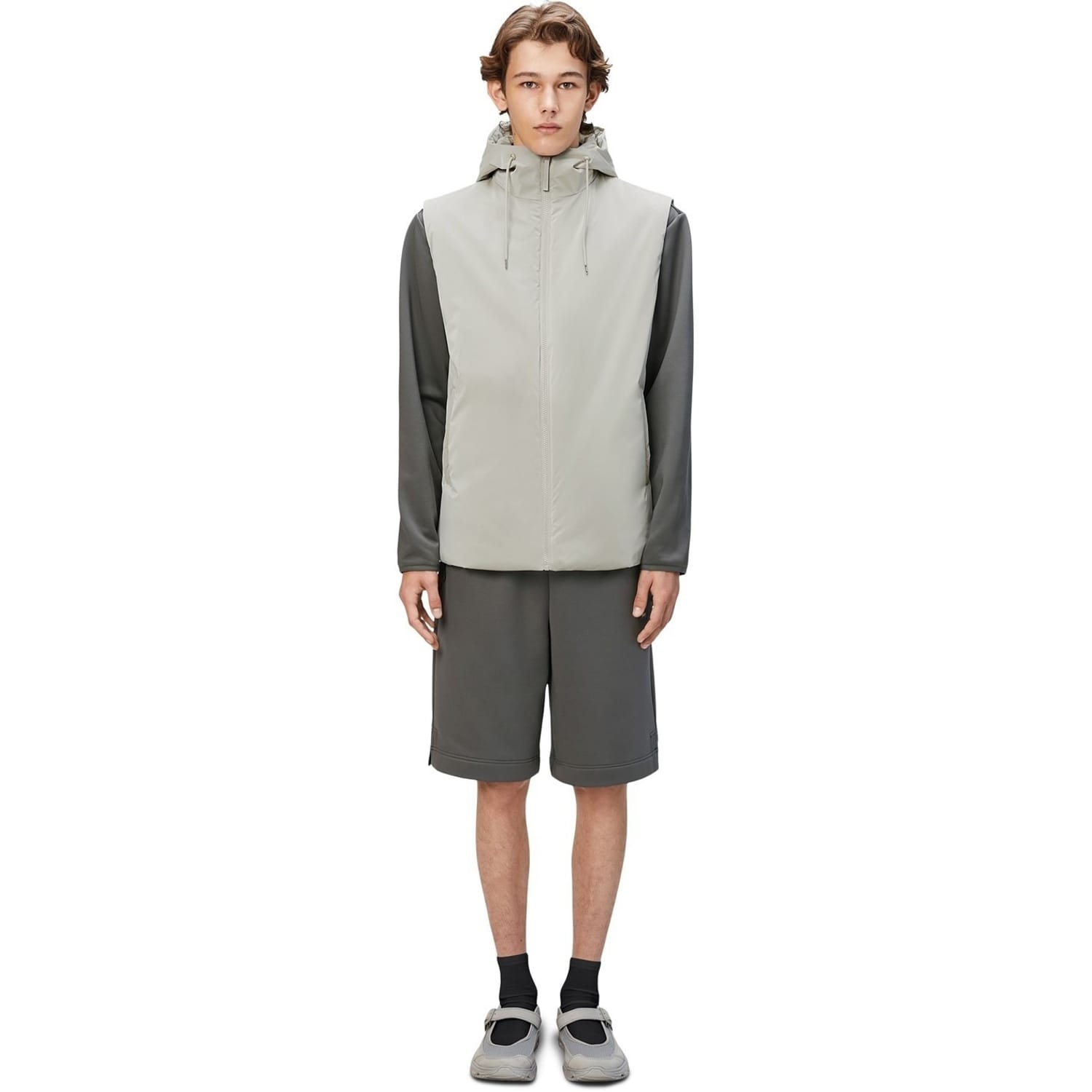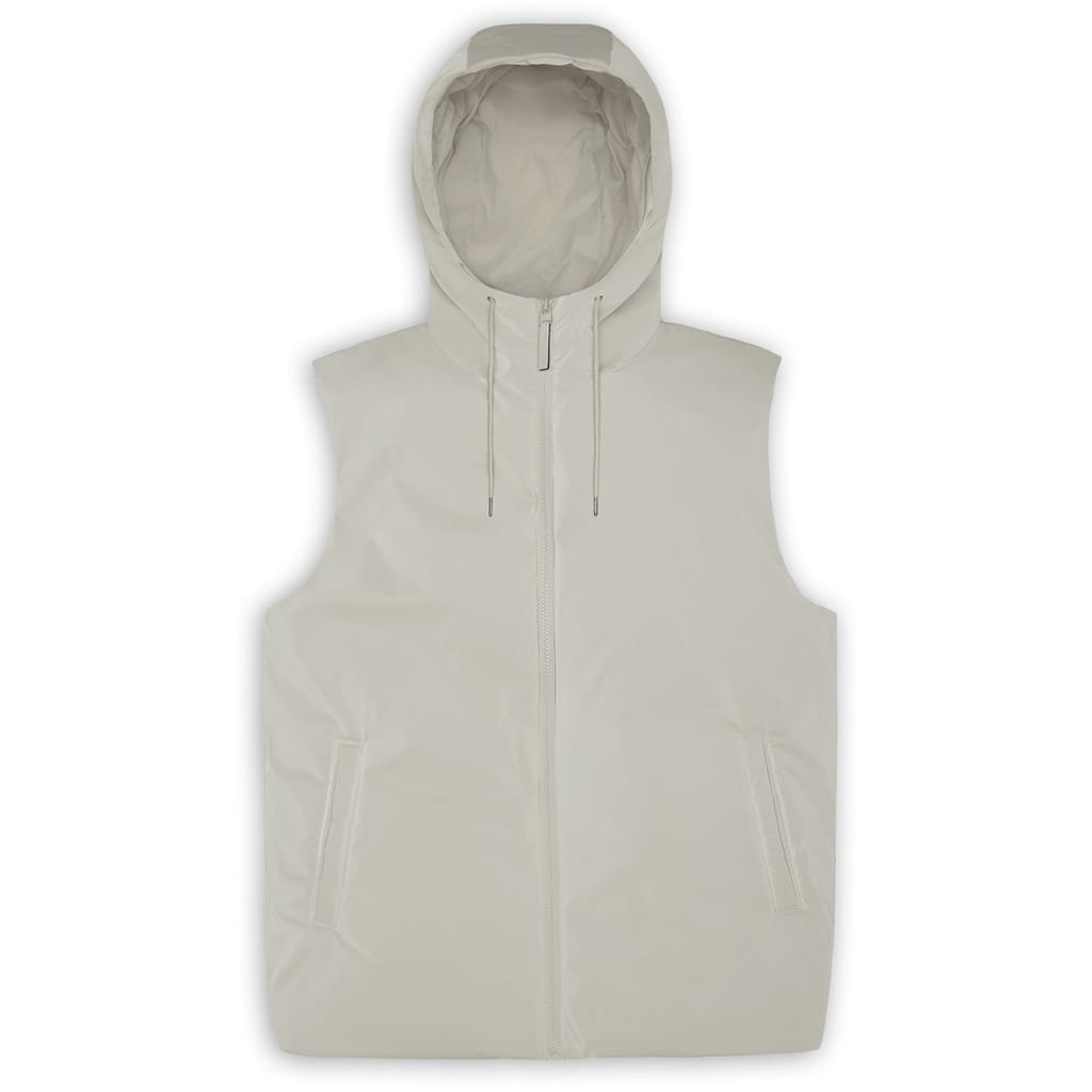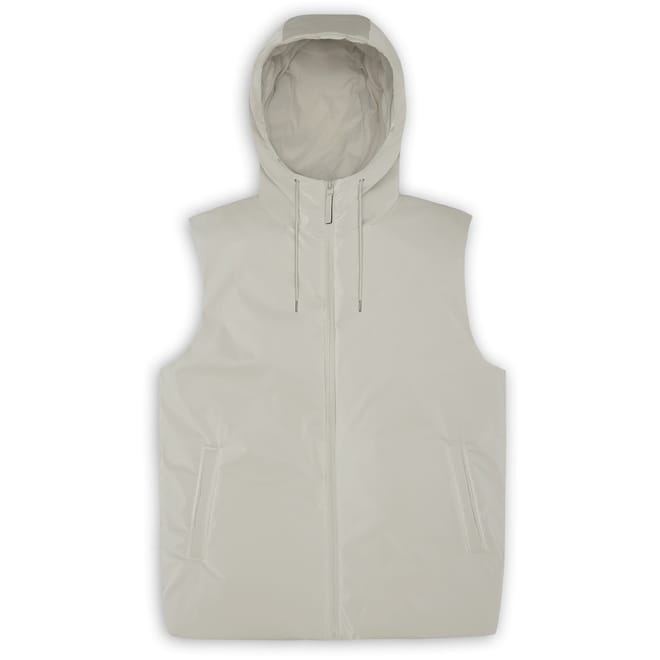 - The waterproof vest is cut from Rains’ signature PU fabric with welded seams. The finish is lightweight with a smooth feel.