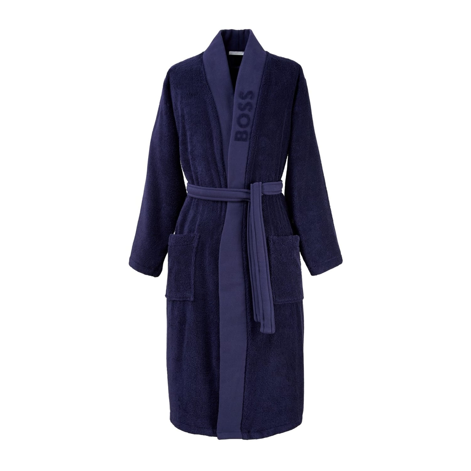 A stylish kimono by BOSS Home. The robe features a kimono-style collar with the BOSS logo-printed on a cotton trim that is contrasting in texture to the rest of the kimono made in a towelling finish. Equipped with two patch pockets and a tone-on-tone belt matching the collar trim. Made with 100% cotton, 100% Cotton, 450 g/m² -