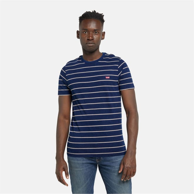 This Levi's top is a casual essential from the basic collection. Featuring a regular fit and short sleeves, it is adorned with a logo and a classic crew neck. The horizontal stripe pattern adds a touch of style, making it a versatile piece for everyday wear. -